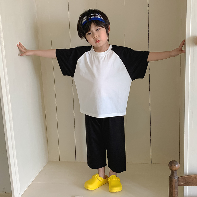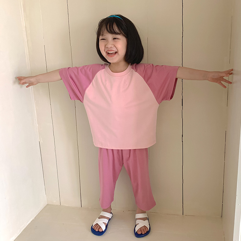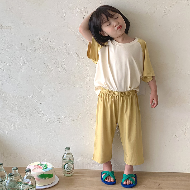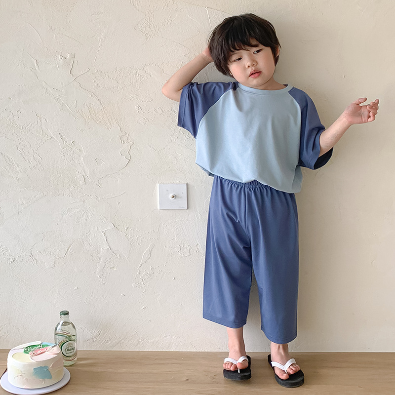 [쿨 패브릭] 모달 잠옷 어린이 여름 소년 소녀 반팔 티셔츠 얇은 가정복 세트