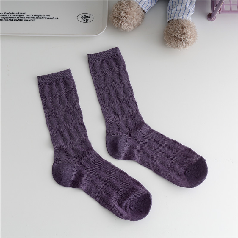 빈티지 마름모꼴 메쉬 양말 유행 여름 얇은 단색 면 양말 통기성 구멍 일본식 중간 길이 양말 여성 스타킹