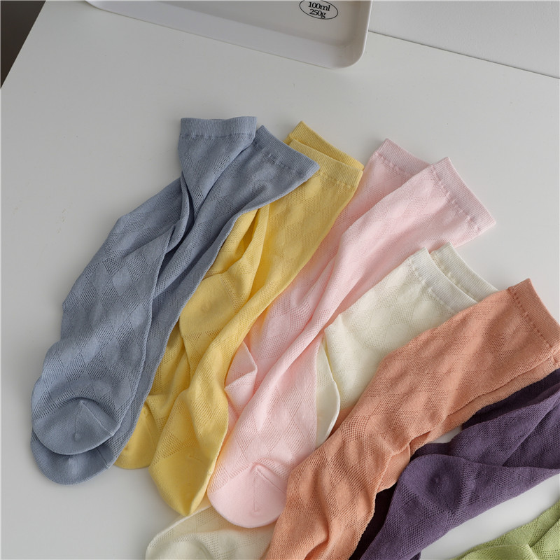 빈티지 마름모꼴 메쉬 양말 유행 여름 얇은 단색 면 양말 통기성 구멍 일본식 중간 길이 양말 여성 스타킹스토어 가기