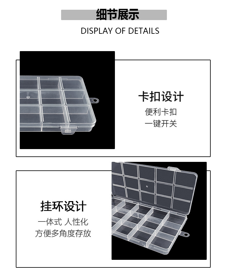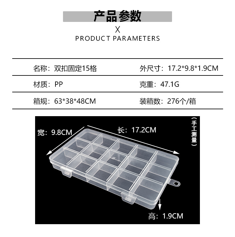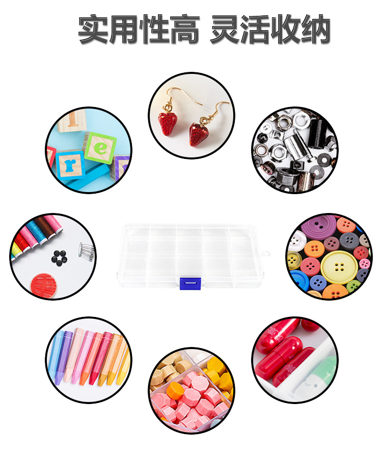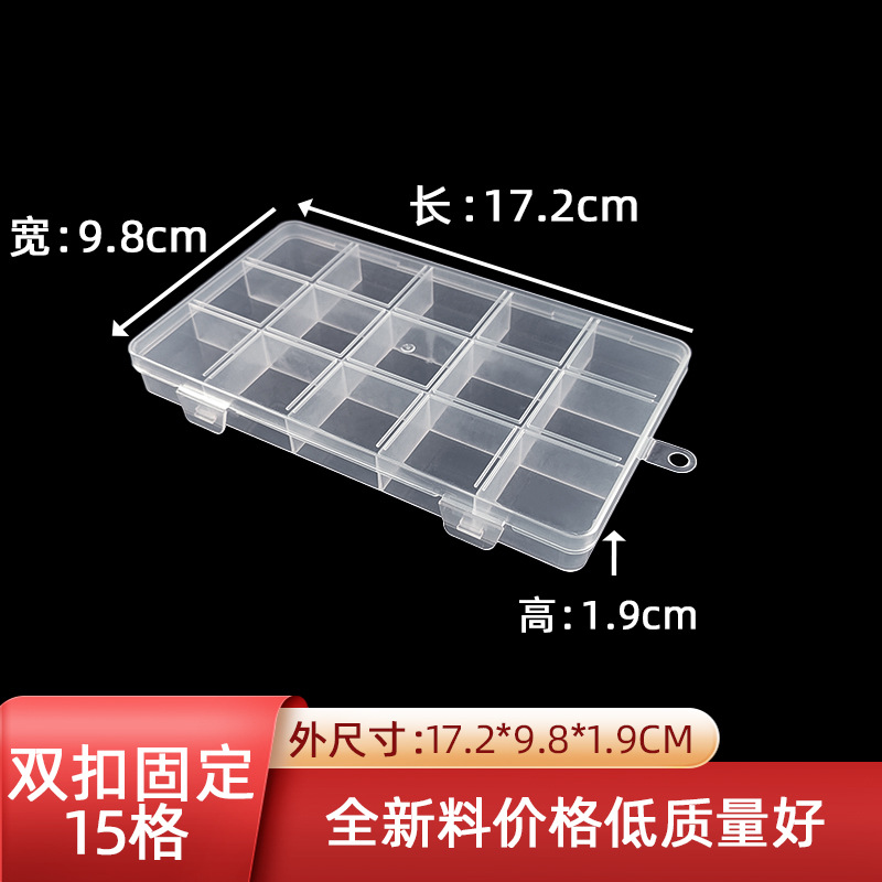 고정 15 그리드 이중 버클 투명 플라스틱 상자 통합 버클 홈 페르시 낚시 장비 문구 하드웨어 도구 안티 스트링 그리드 상자