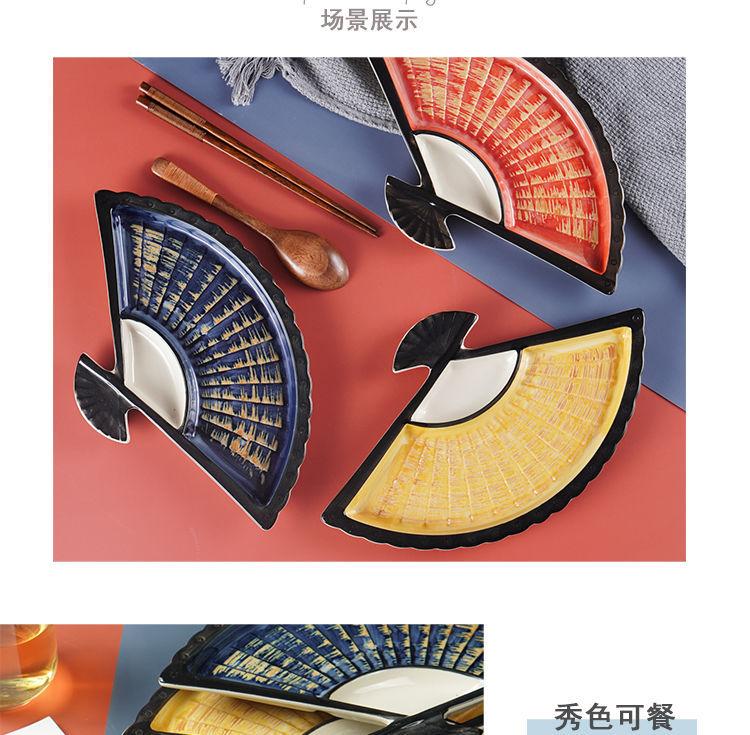 식초 접시와 인터넷 연예인 만두 접시 창조적 인 세라믹 분할 디너 플레이트 일본 손으로 그린 스시 접시 팬 모양의 스낵 플레이트