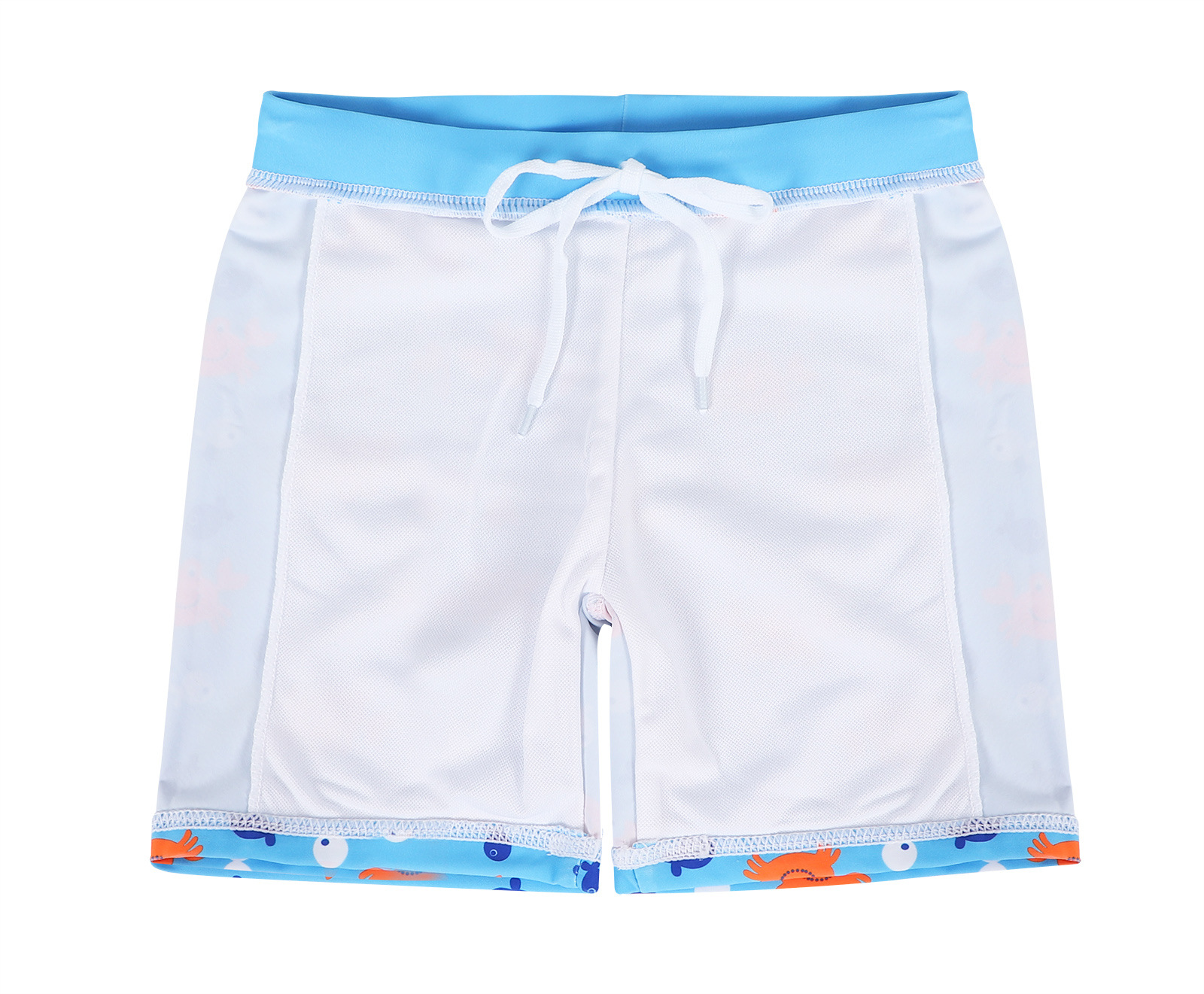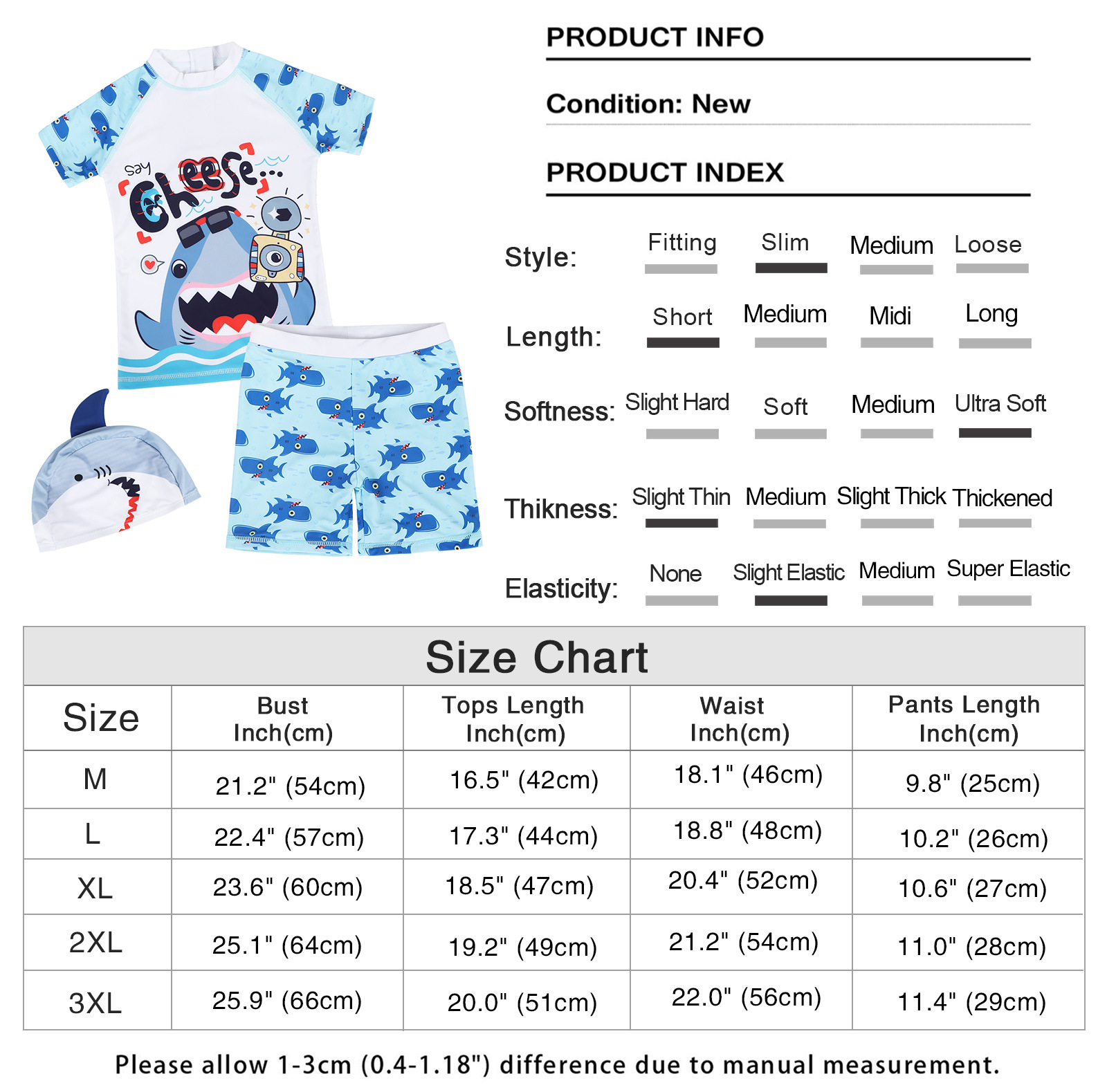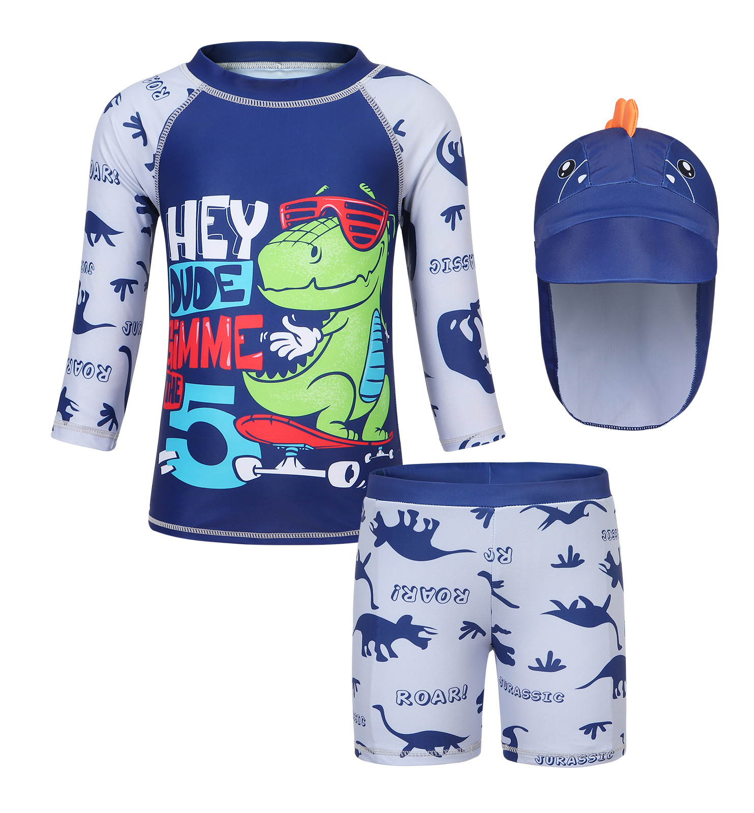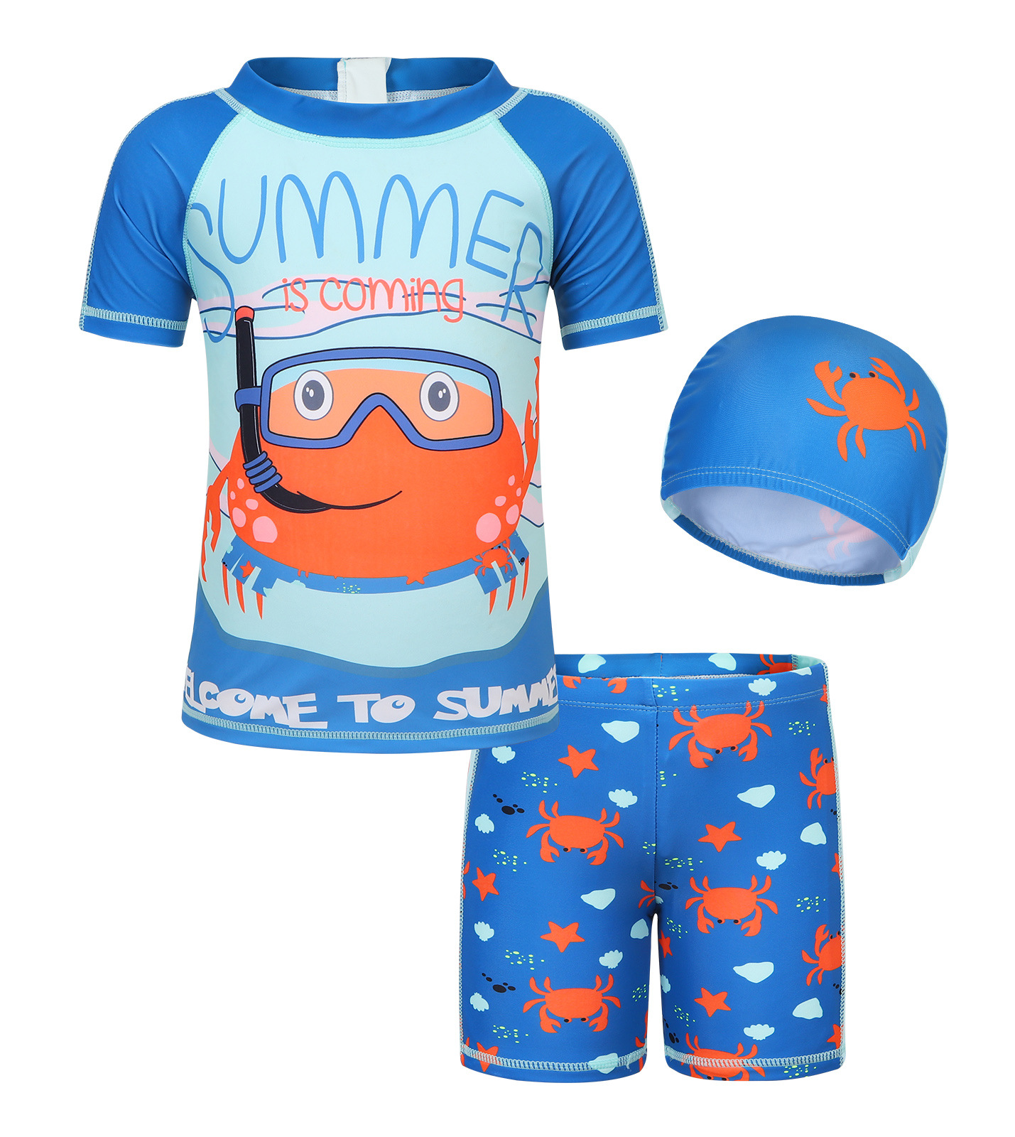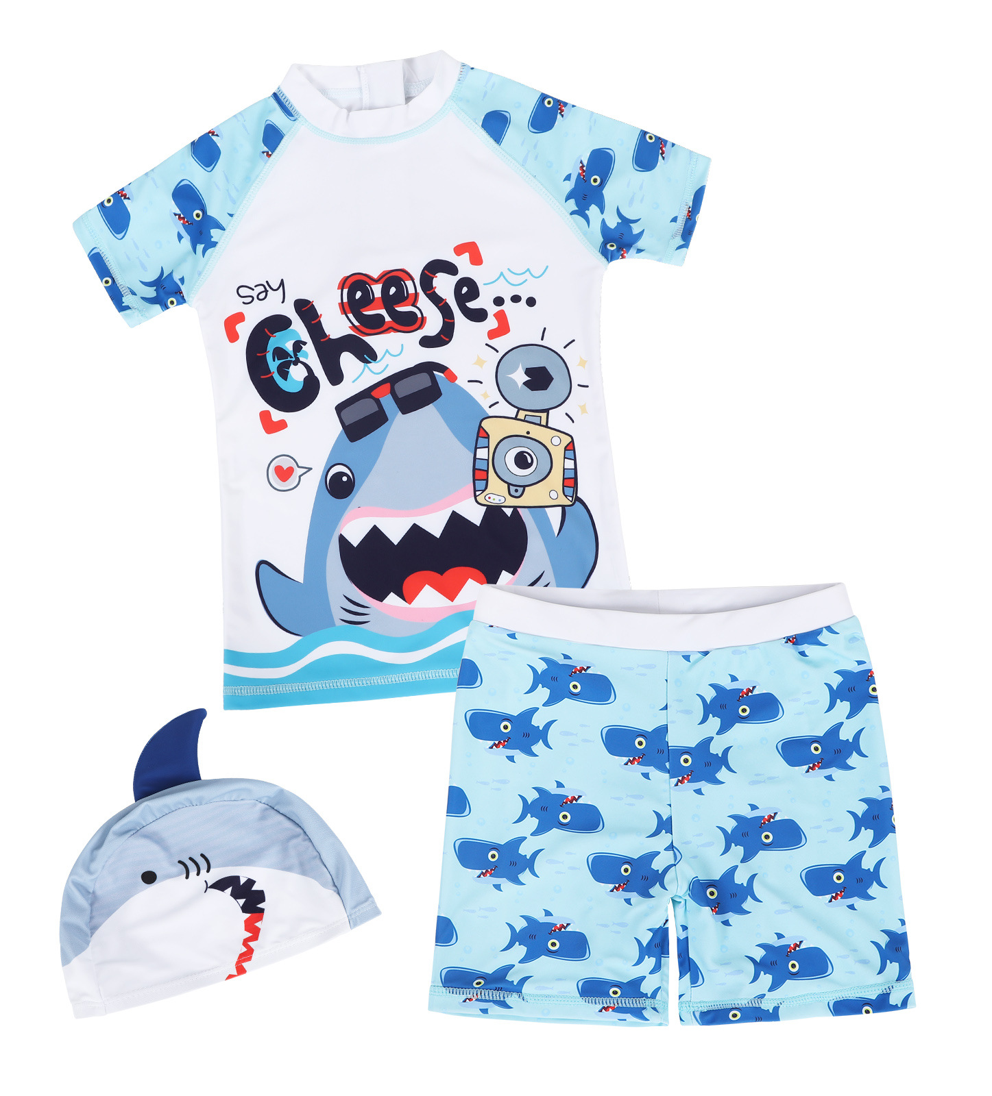 어린이 수영복 만화 해양 요소가 있는 남아용 분리형 수영복, 자외선 차단 속건 수영 팬츠, 태양 모자, 3종 세트 수영복