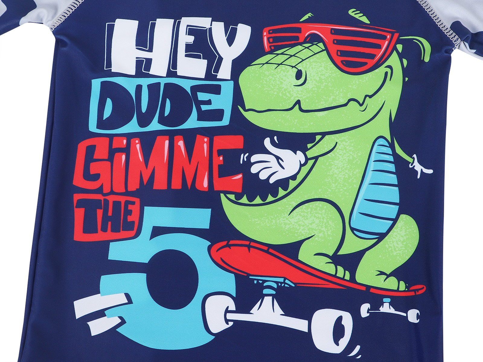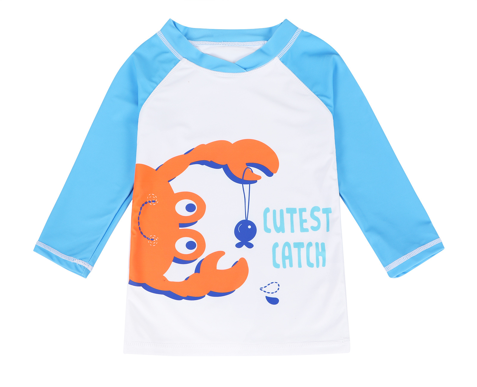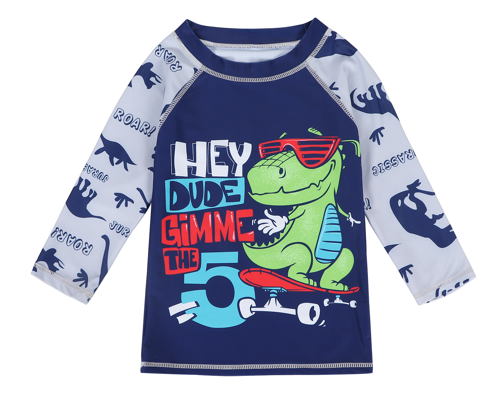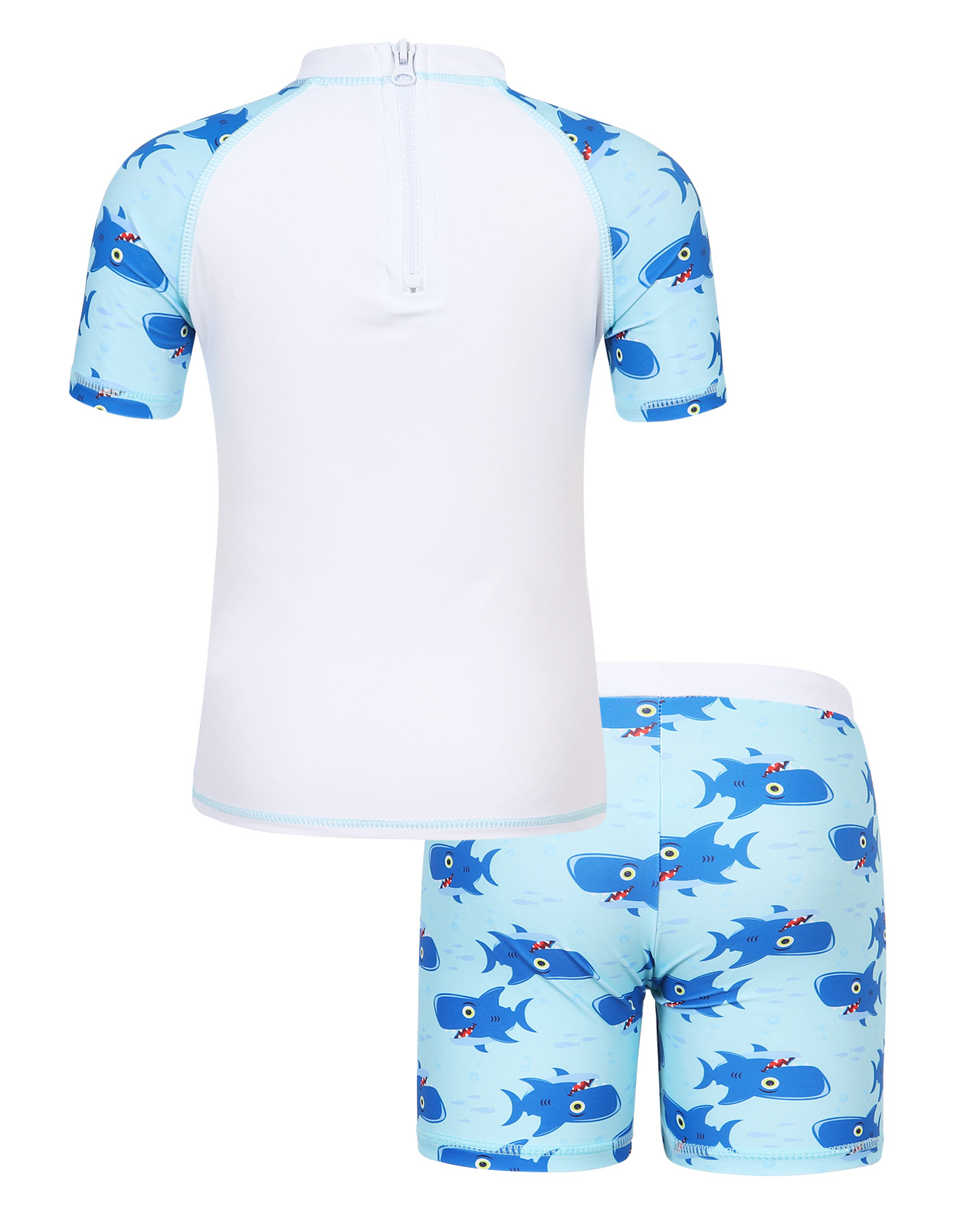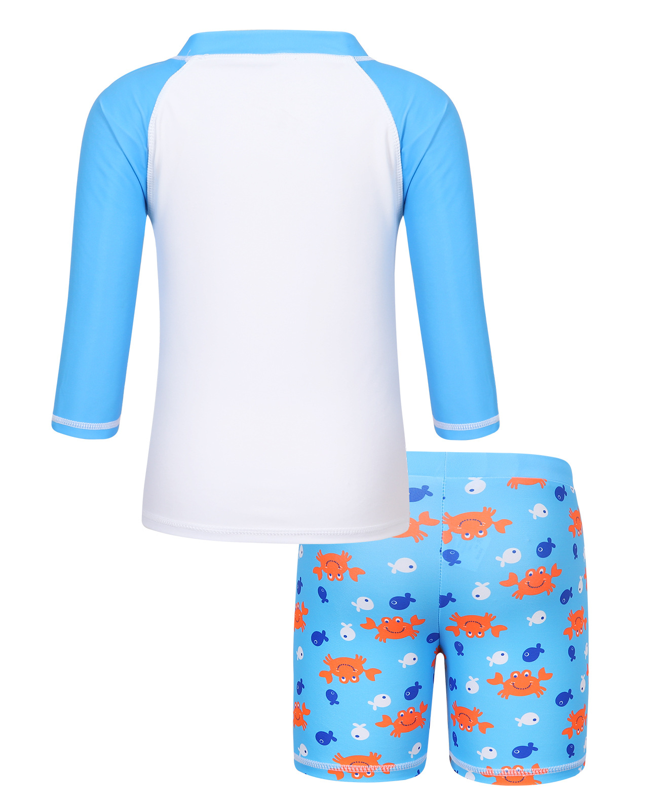어린이 수영복 만화 해양 요소가 있는 남아용 분리형 수영복, 자외선 차단 속건 수영 팬츠, 태양 모자, 3종 세트 수영복