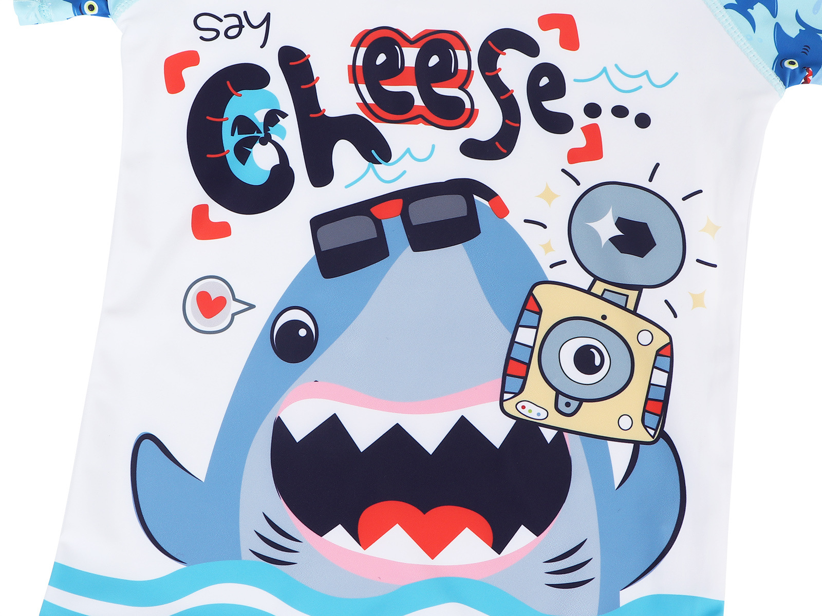 어린이 수영복 만화 해양 요소가 있는 남아용 분리형 수영복, 자외선 차단 속건 수영 팬츠, 태양 모자, 3종 세트 수영복스토어 가기