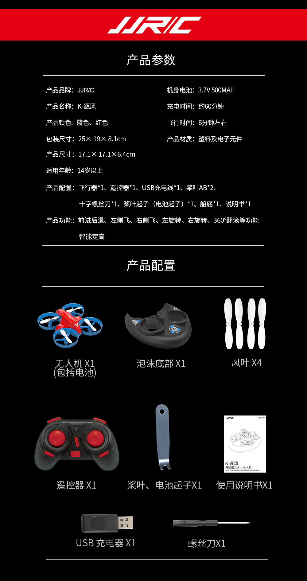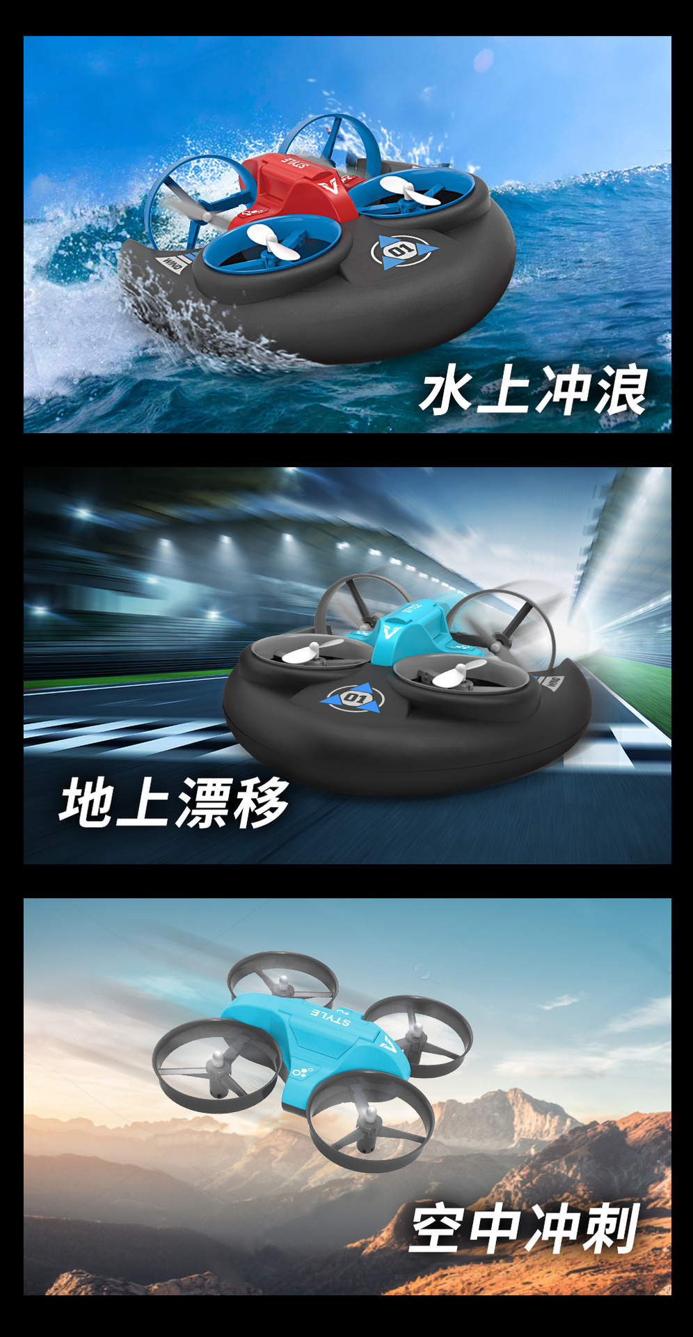 JJRC 인기 미니 미니 항공기 수상, 육상 및 공중 3-in-1 방수 드론 장난감 2.4G 원격 제어 항공기스토어 가기