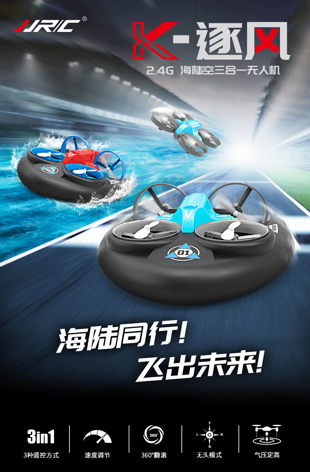 JJRC 인기 미니 미니 항공기 수상, 육상 및 공중 3-in-1 방수 드론 장난감 2.4G 원격 제어 항공기