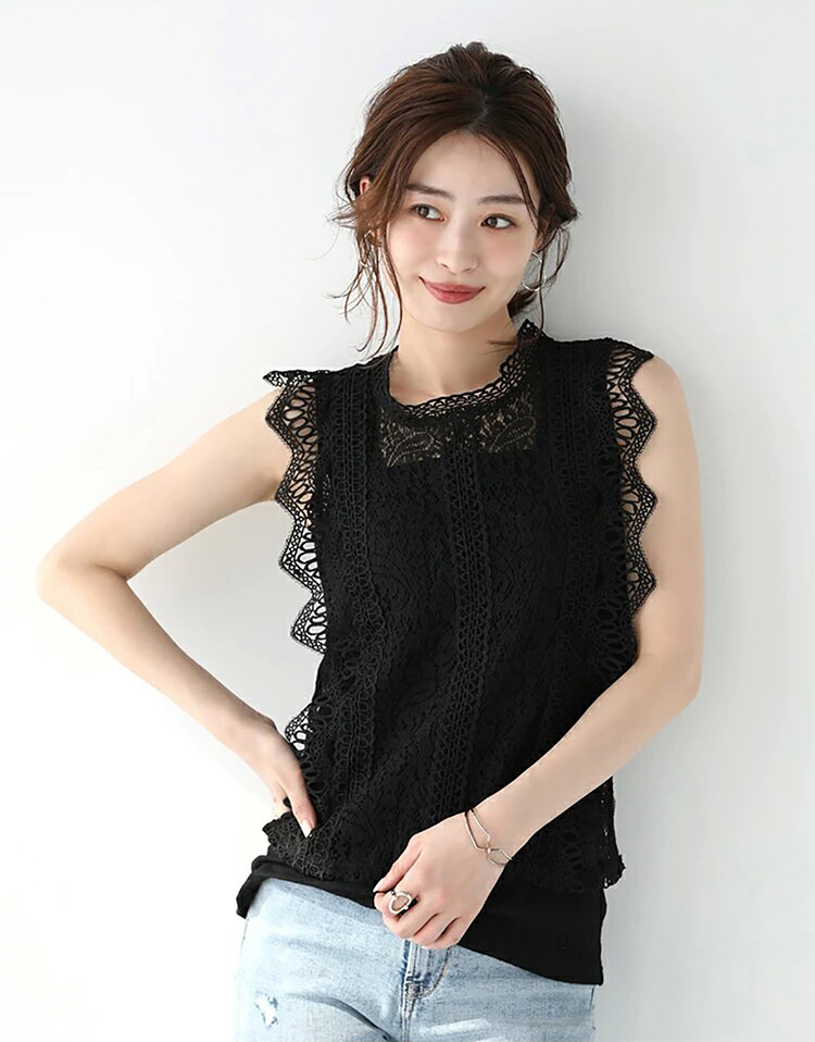 일본 레이토 6색 재고 면 소재 여성용 이너웨어 여성용 단색 레이스 탑 여성용 수출용스토어 가기