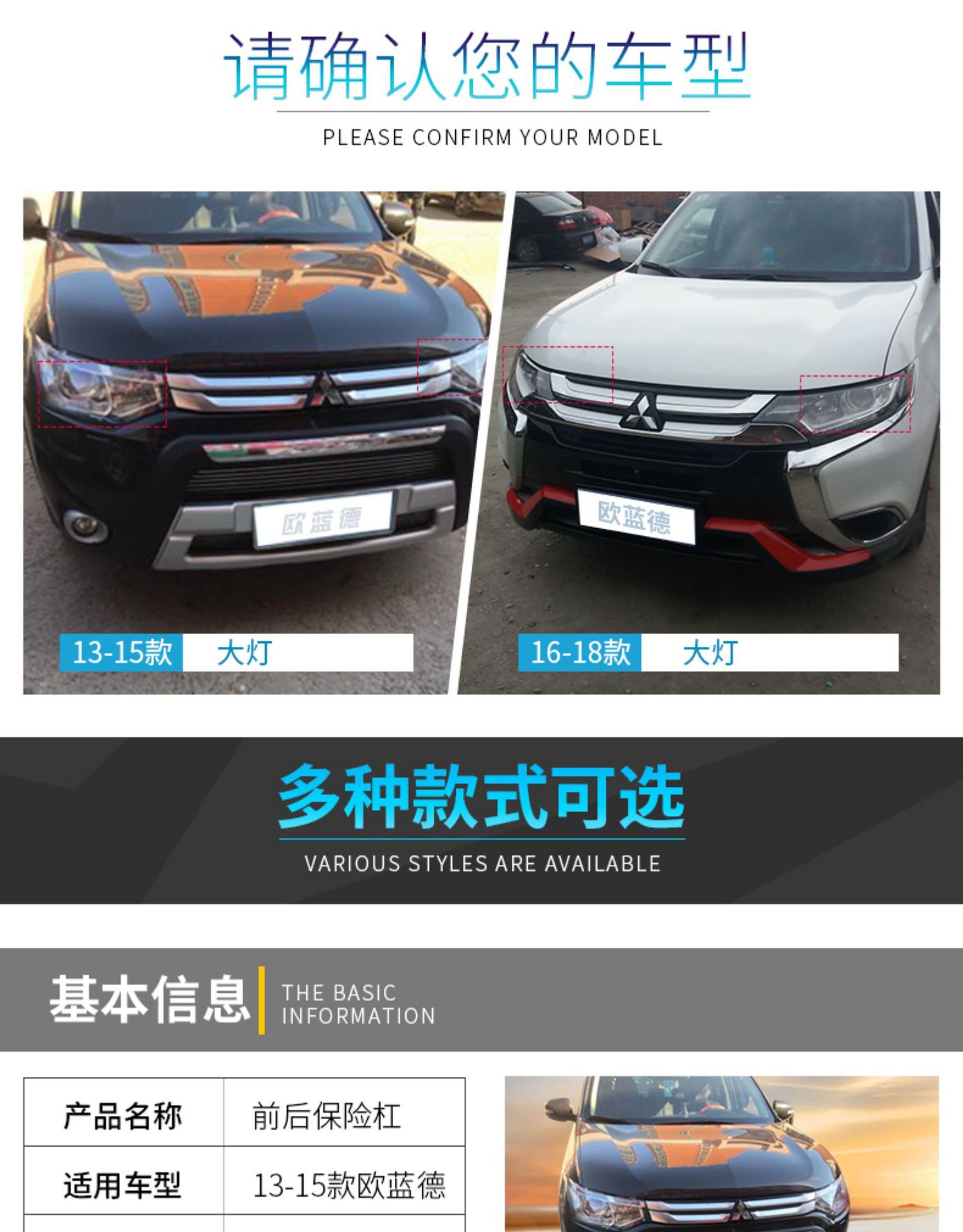 Mitsubishi Outlander 범퍼에 적합 16-18 년 13-15 오래된 19-21 앞 범퍼와 뒷 범퍼를 둘러싸도록 수정스토어 가기