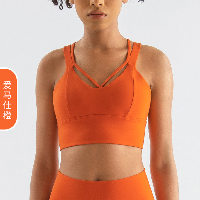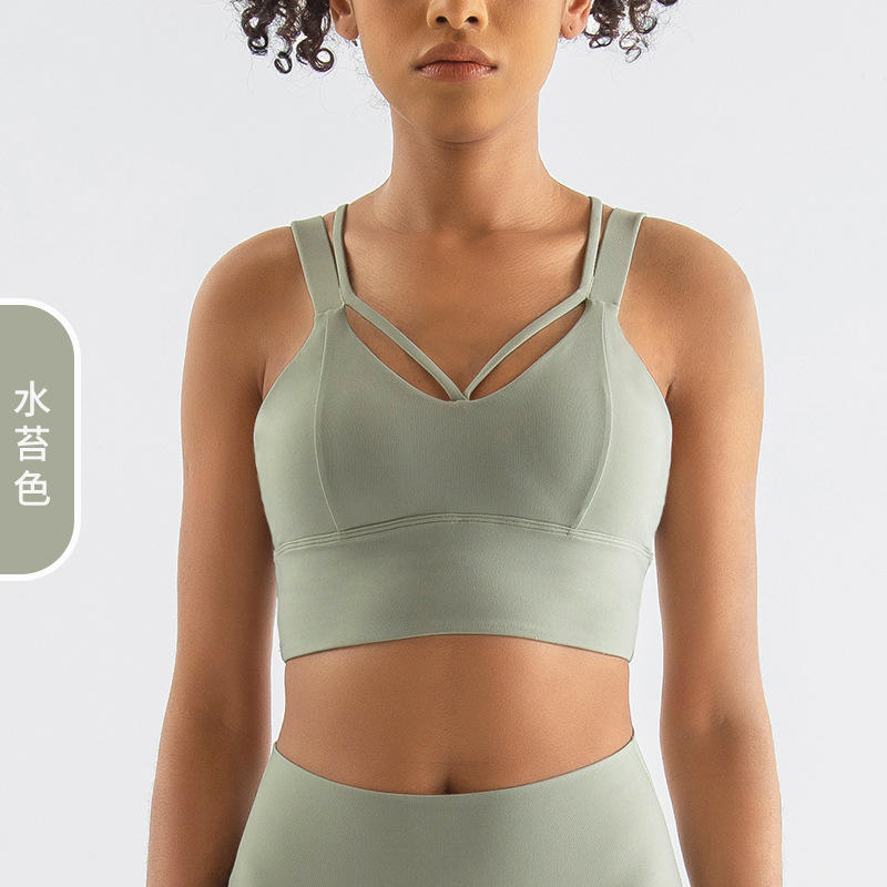 2022 유럽 및 미국 크로스백 스포츠 속옷 여성용 중공 조끼 스포츠 브라 충격 방지 푸시 업 요가 의류 브래지어