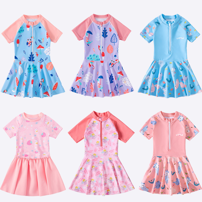 새로운 어린이 수영복 소녀 소녀 아기 수영복 도매 소형, 중형 및 대형 어린이 원피스 학생 온천 수영복