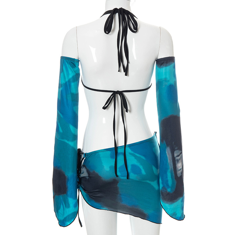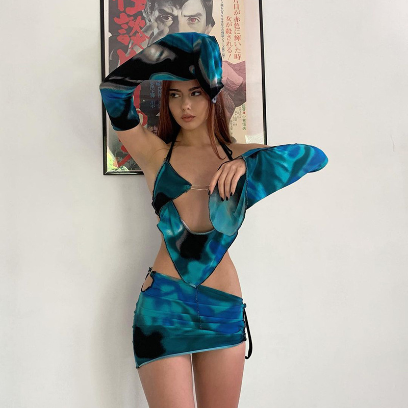 Qiduo 2022 크로스 보더 유럽과 미국 새로운 Y2K 멜빵 목 소매 등이없는 낮은 허리 엉덩이 치마 여자의 원피스