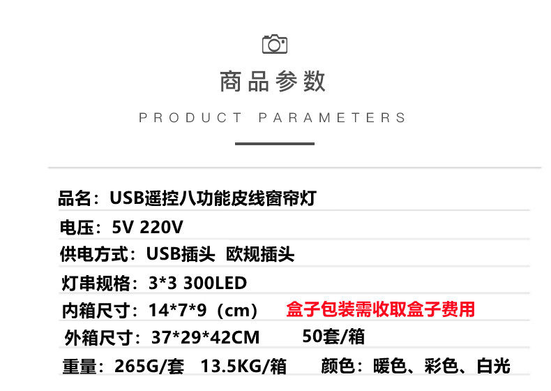 灯珠数量:窗帘灯(100灯,200灯,300灯),