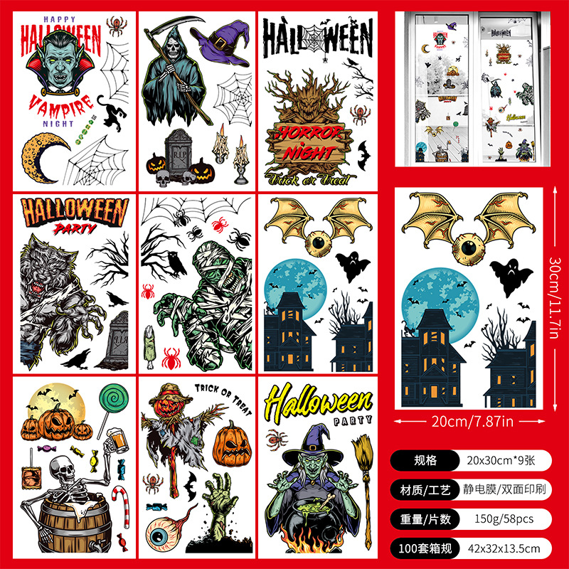 도매 새로운 아마존 할로윈 공포 죽음 정전기 창 스티커 휴일 파티 장면 레이아웃 스티커스토어 가기