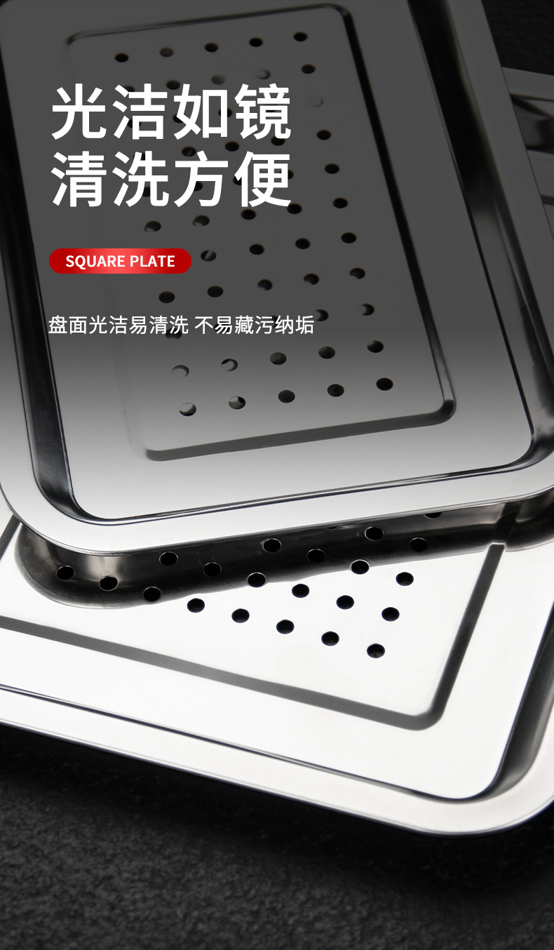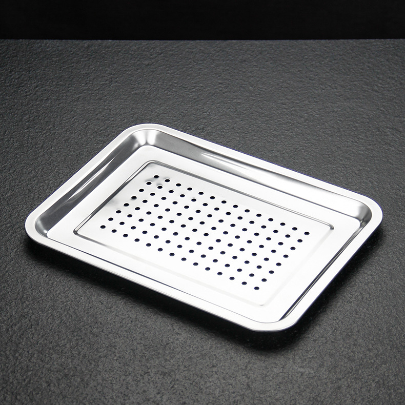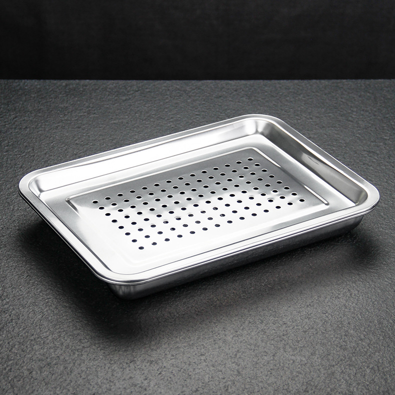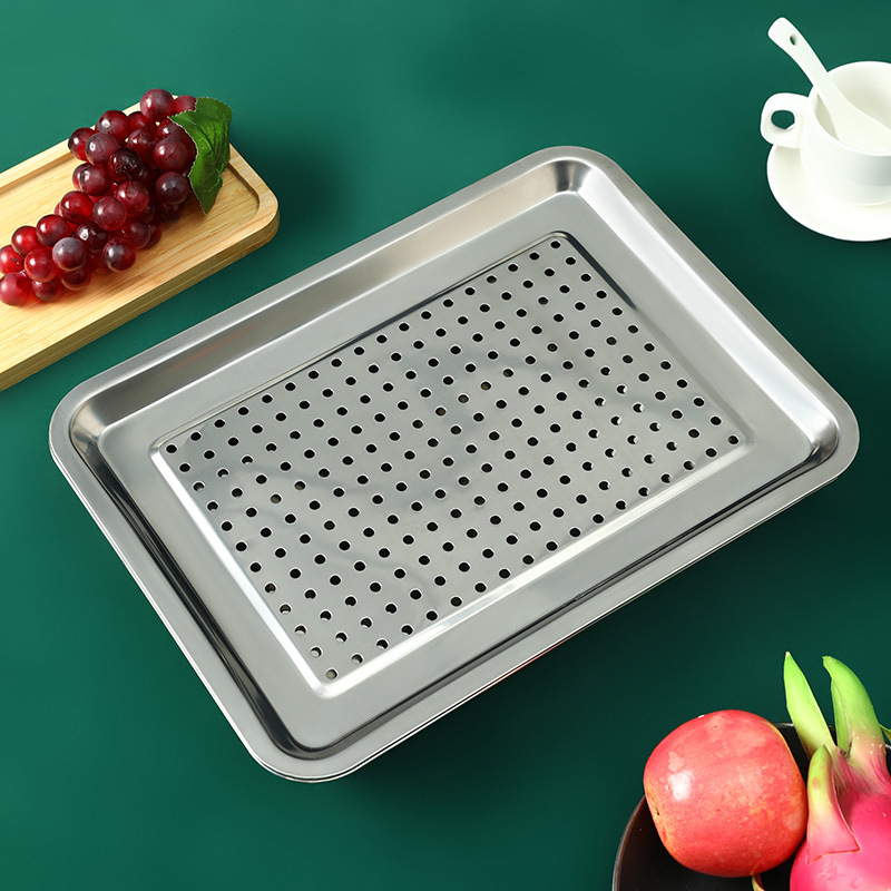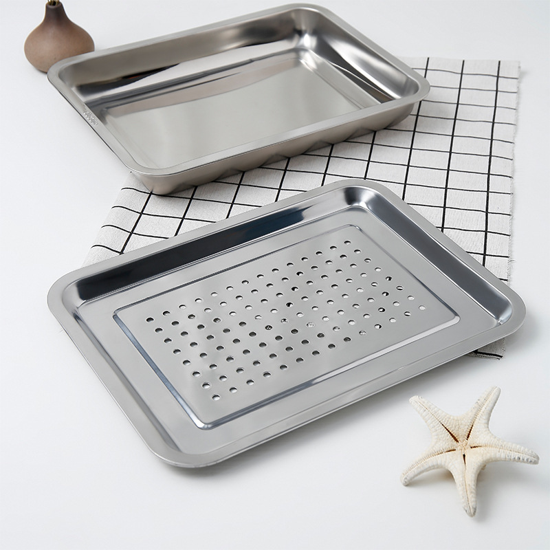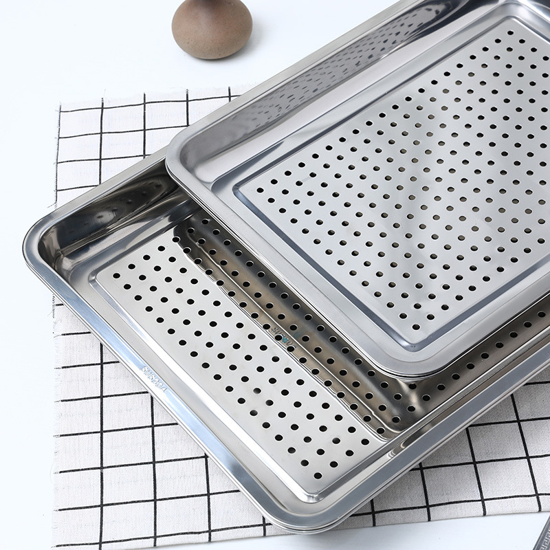 사각형 스테인리스 트레이, 구멍 뚫린 배수 트레이, 차 트레이, 스테인리스 식사 트레이, 준비용 트레이, 직사각형 요리 트레이스토어 가기