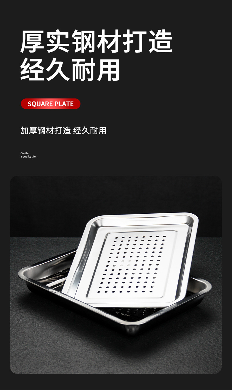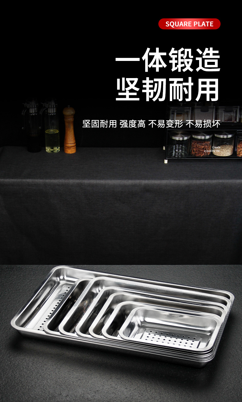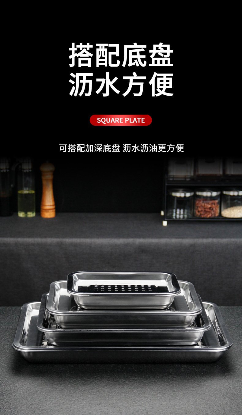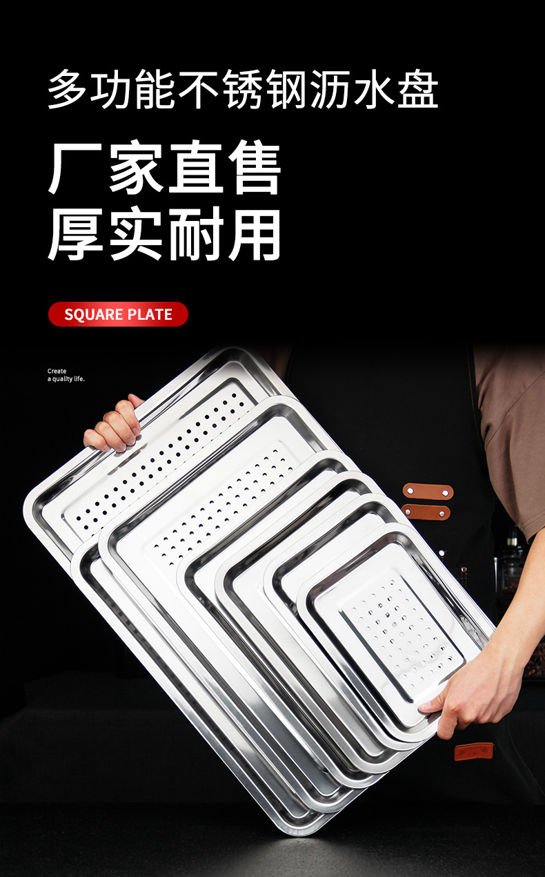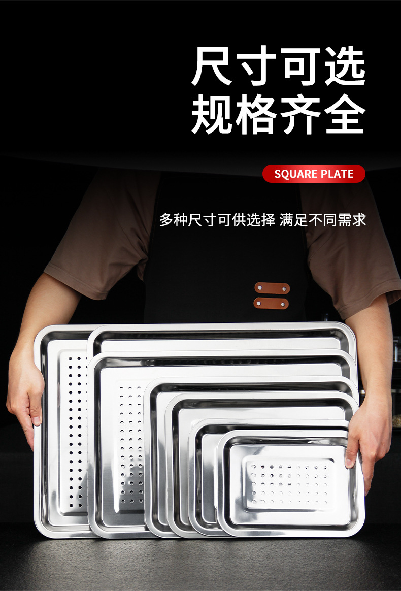 사각형 스테인리스 트레이, 구멍 뚫린 배수 트레이, 차 트레이, 스테인리스 식사 트레이, 준비용 트레이, 직사각형 요리 트레이스토어 가기