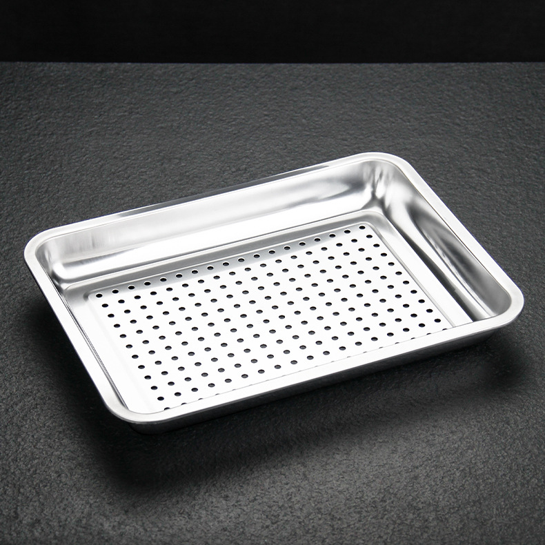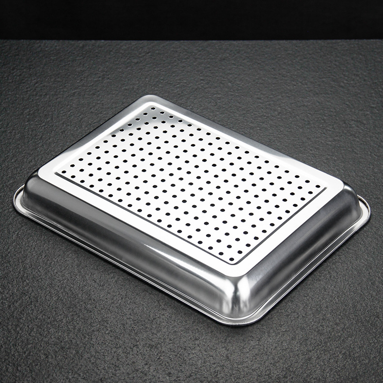 사각형 스테인리스 트레이, 구멍 뚫린 배수 트레이, 차 트레이, 스테인리스 식사 트레이, 준비용 트레이, 직사각형 요리 트레이