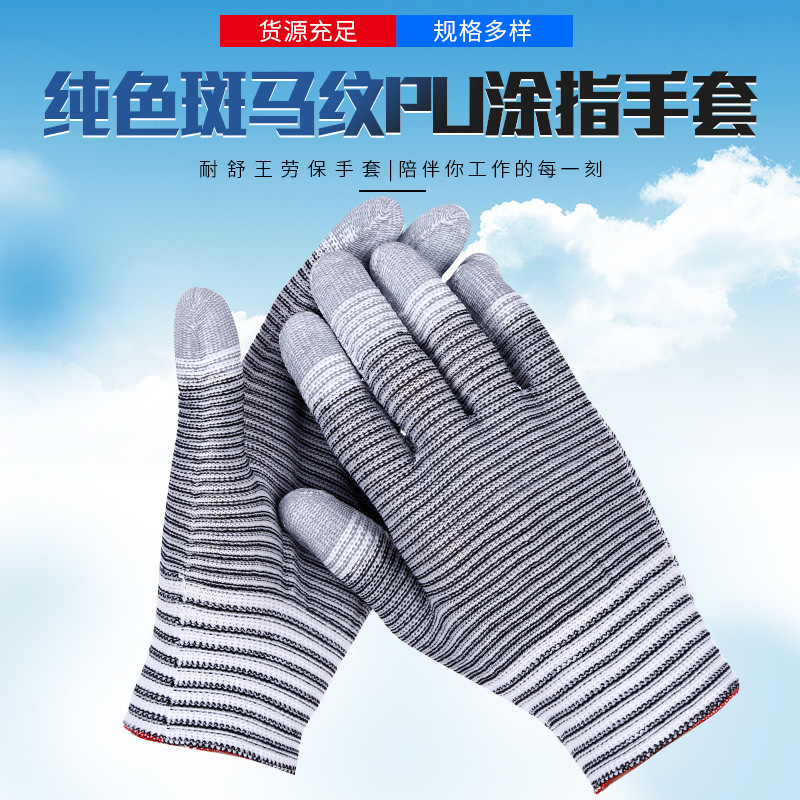 얼룩말 패턴 pu 코팅 손가락 pu 코팅 손가락 담근 먼지 없는 전자 노동 장갑 통기성 미끄럼 방지 피킹 장갑
