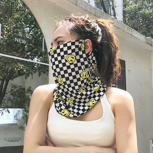夏季直播款防晒面罩全脸冰丝面罩骑车防晒字母黑白欧美风面罩女士