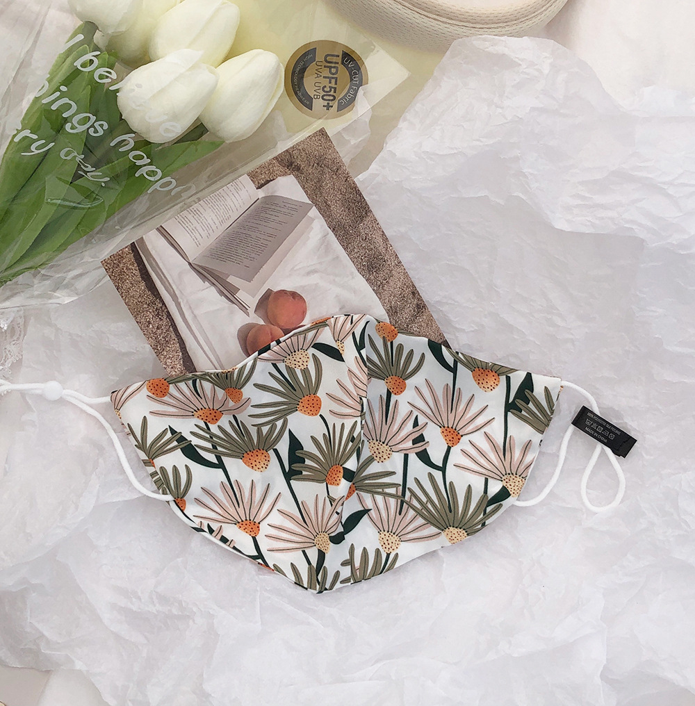 夏季防晒全脸面罩日系清新腰果花朵遮阳护颈挂耳面罩骑行仿紫外线