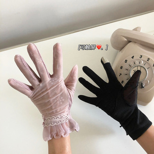防晒手套女防紫外线薄款开车夏季触屏电动车骑行防滑透气短款手套
