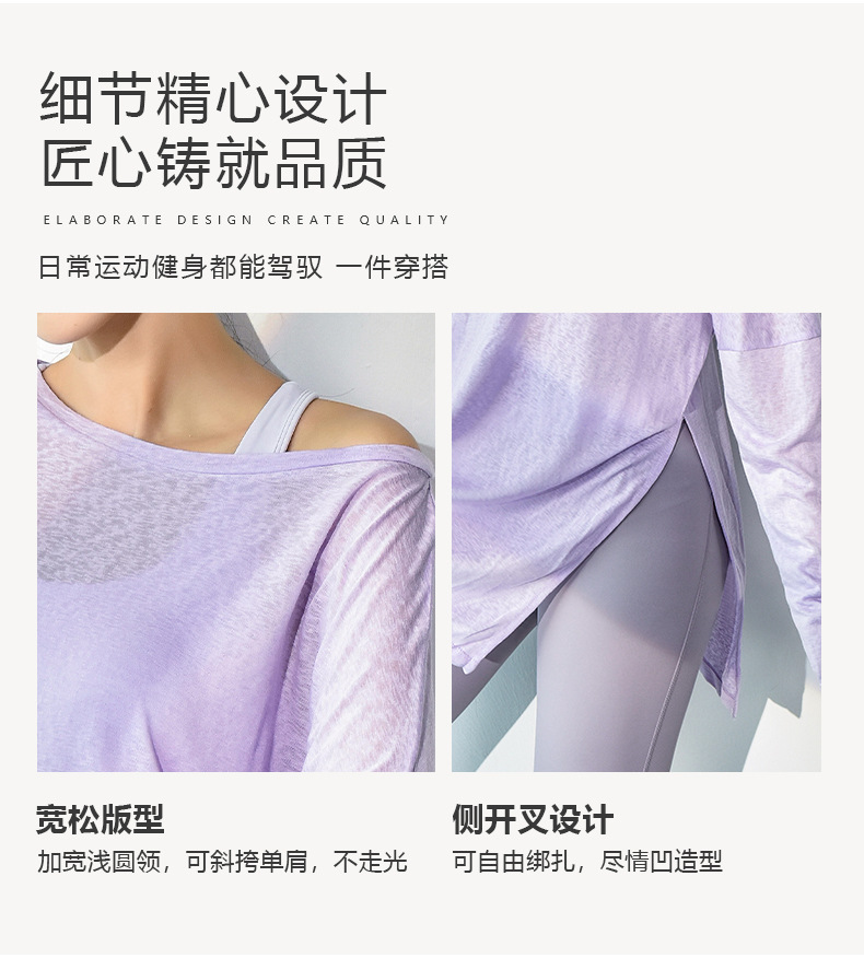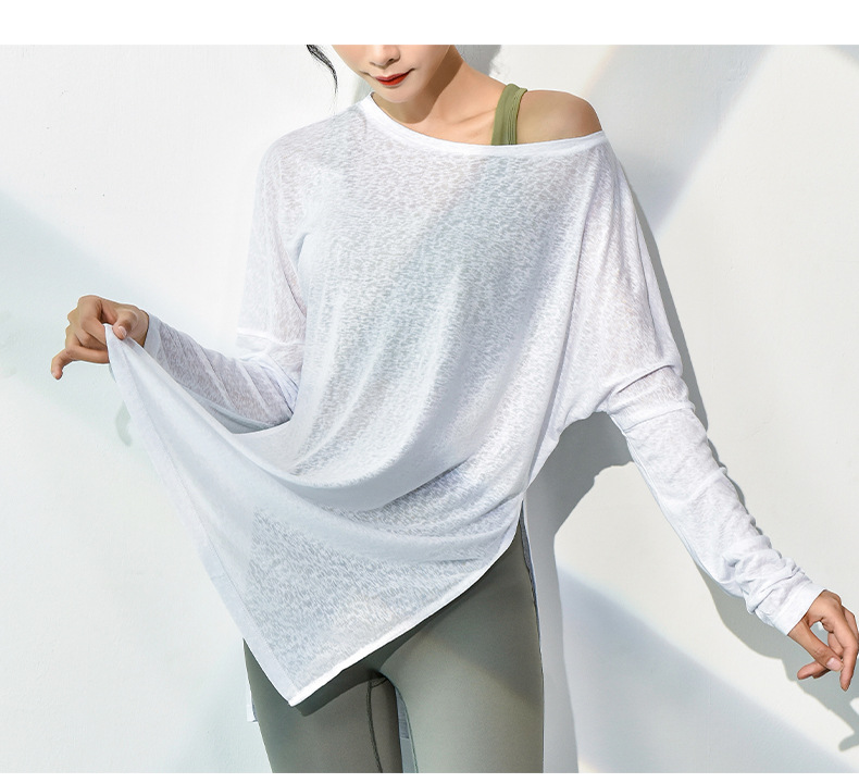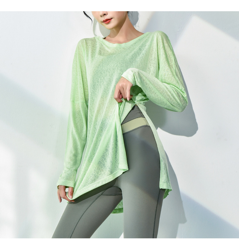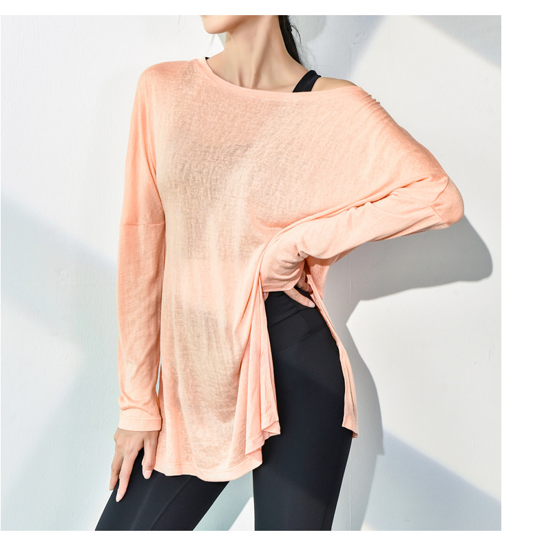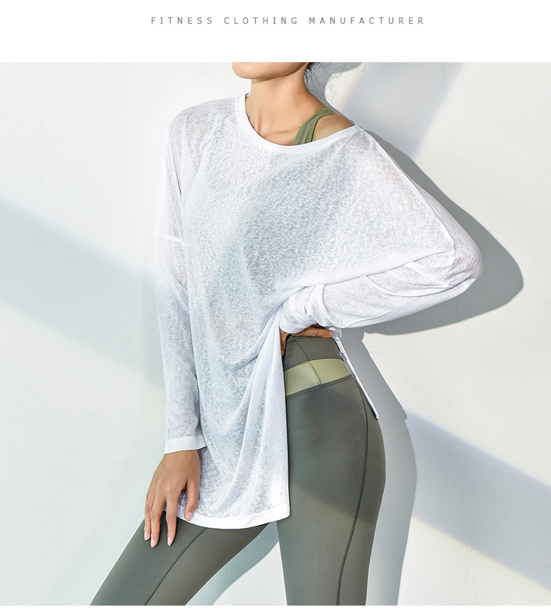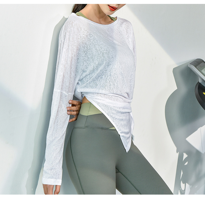 봄과 여름 뜨거운 판매 피트니스 요가 의류 패션 부드러운 피부 친화적 인 느슨한 땀 흡수성 통기성 빠른 건조 블라우스 긴 소매 얇은 여성