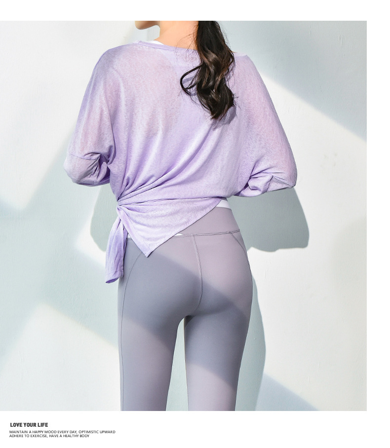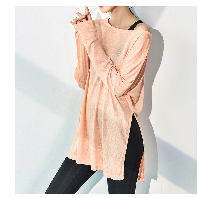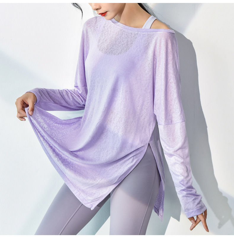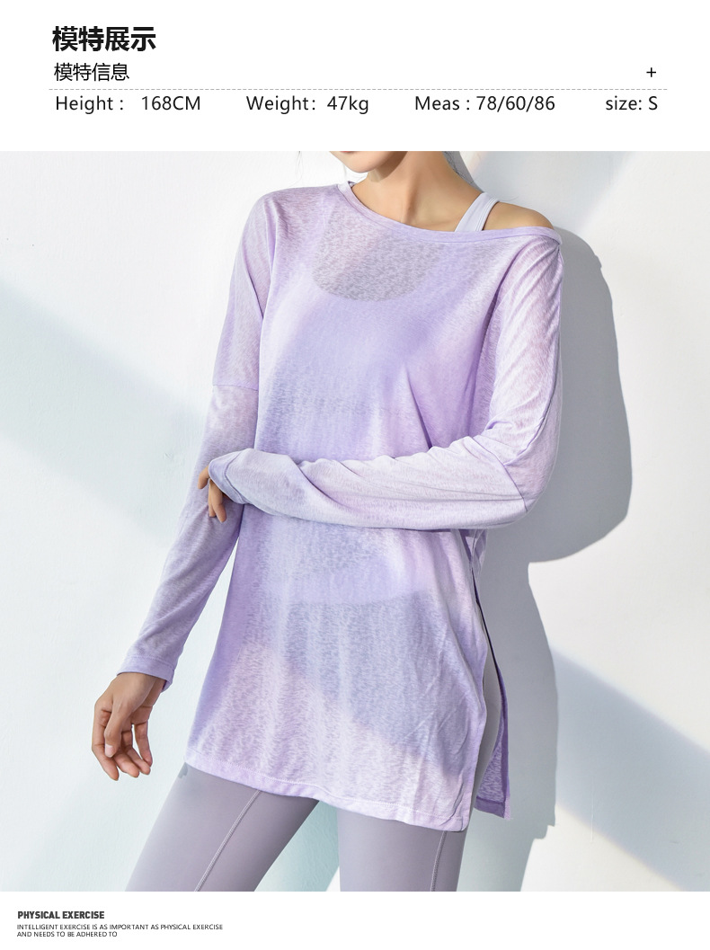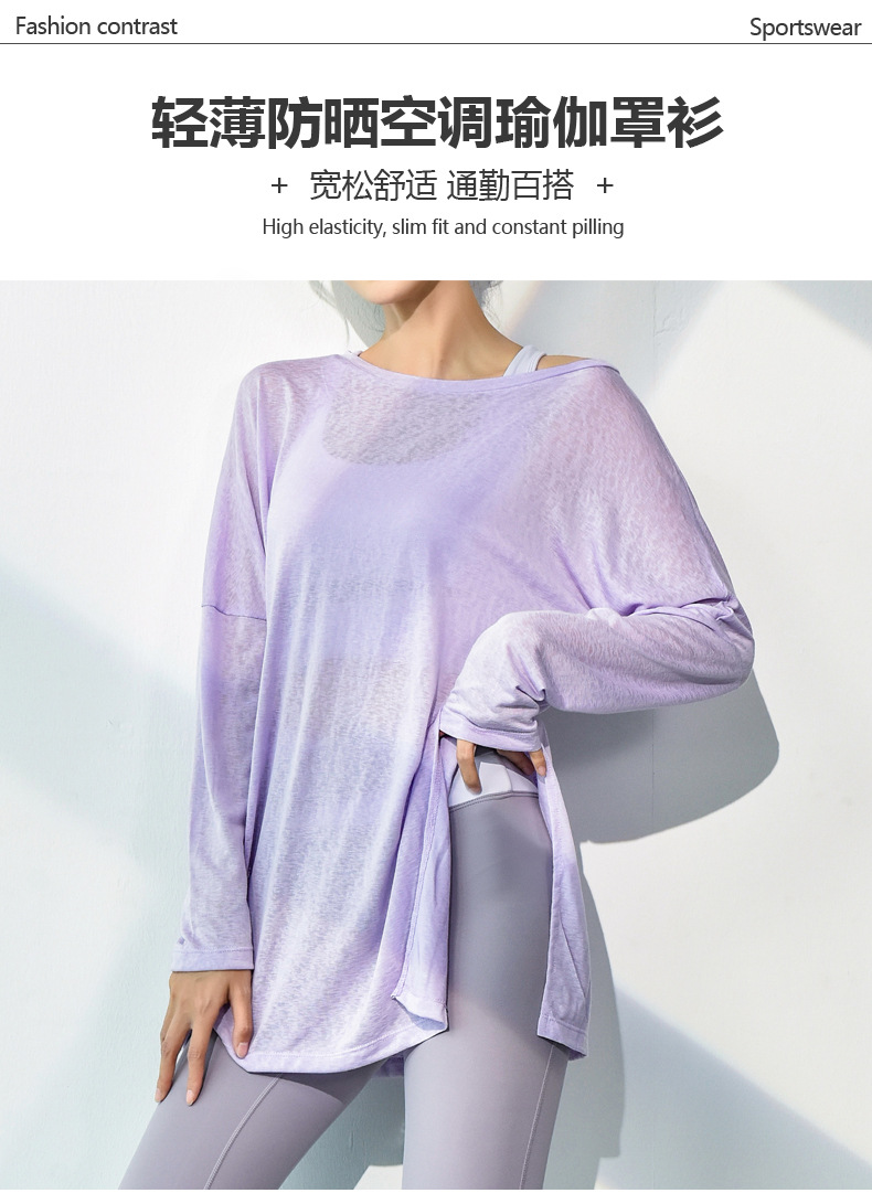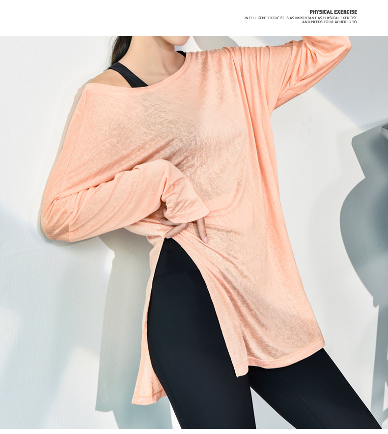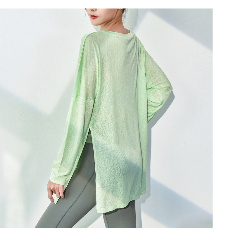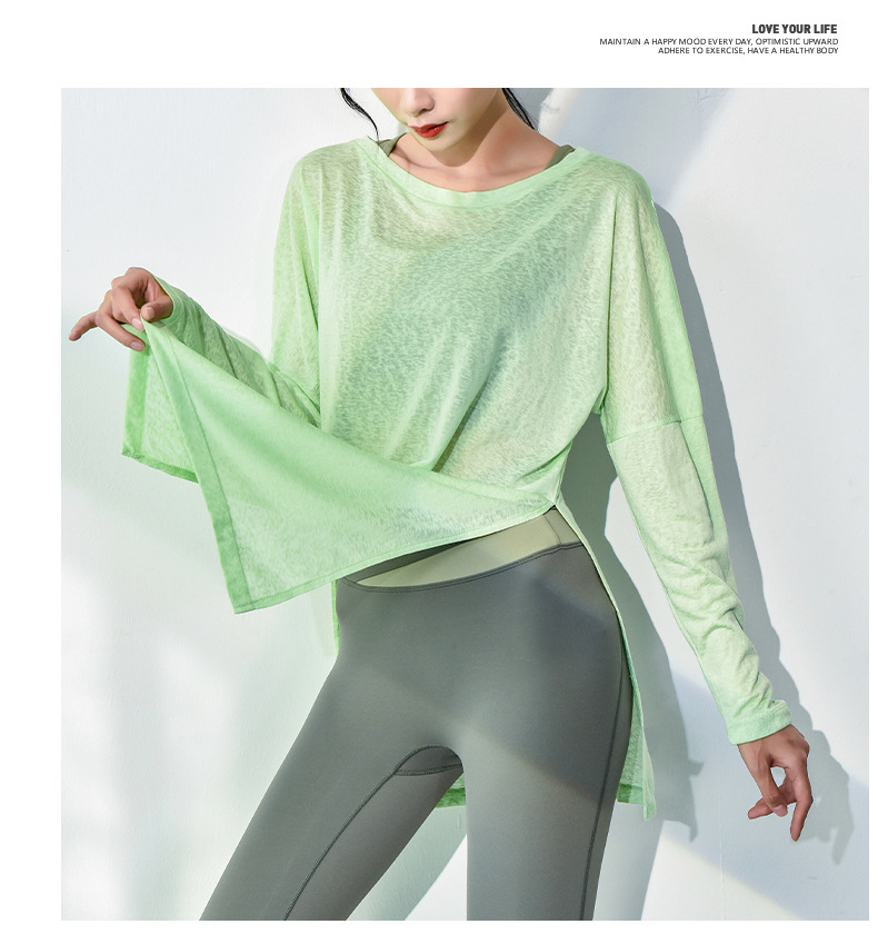 봄과 여름 뜨거운 판매 피트니스 요가 의류 패션 부드러운 피부 친화적 인 느슨한 땀 흡수성 통기성 빠른 건조 블라우스 긴 소매 얇은 여성스토어 가기