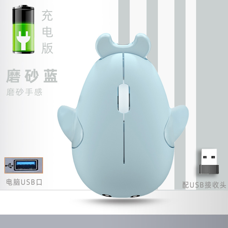 크리 에이 티브 선물 돌고래 무선 마우스 음소거 귀여운 USB 충전식 배터리 컴퓨터 액세서리 국경 아마존 대외 무역