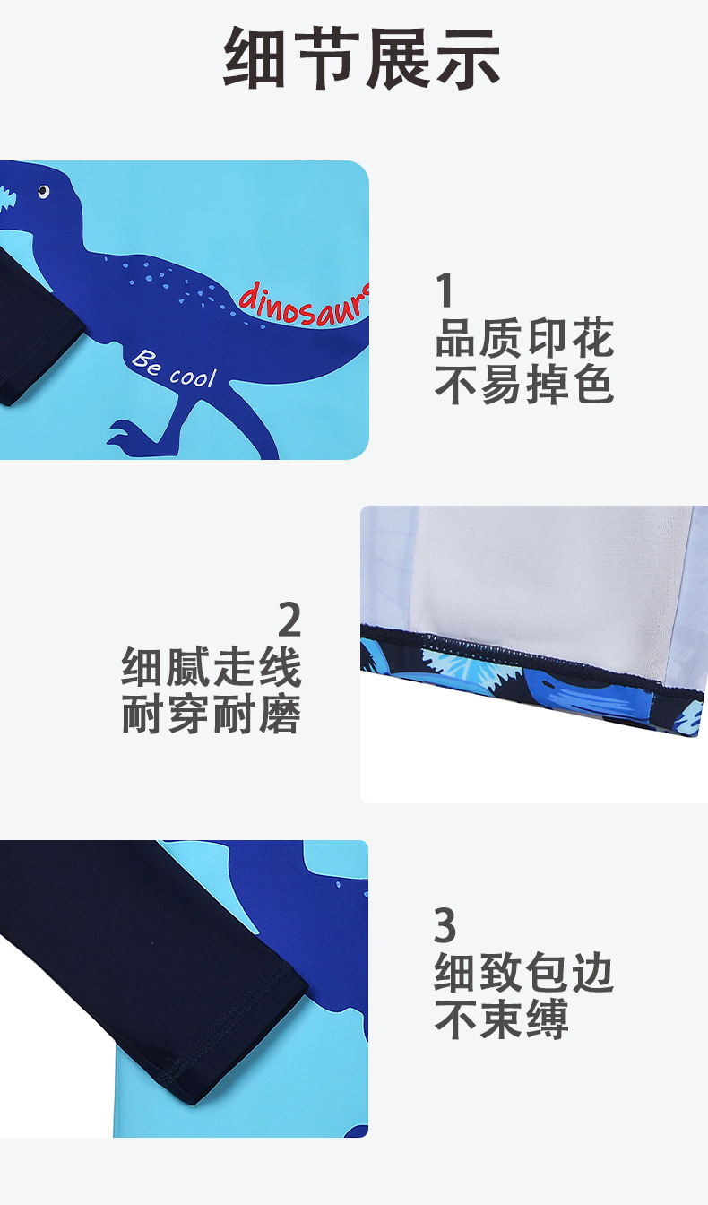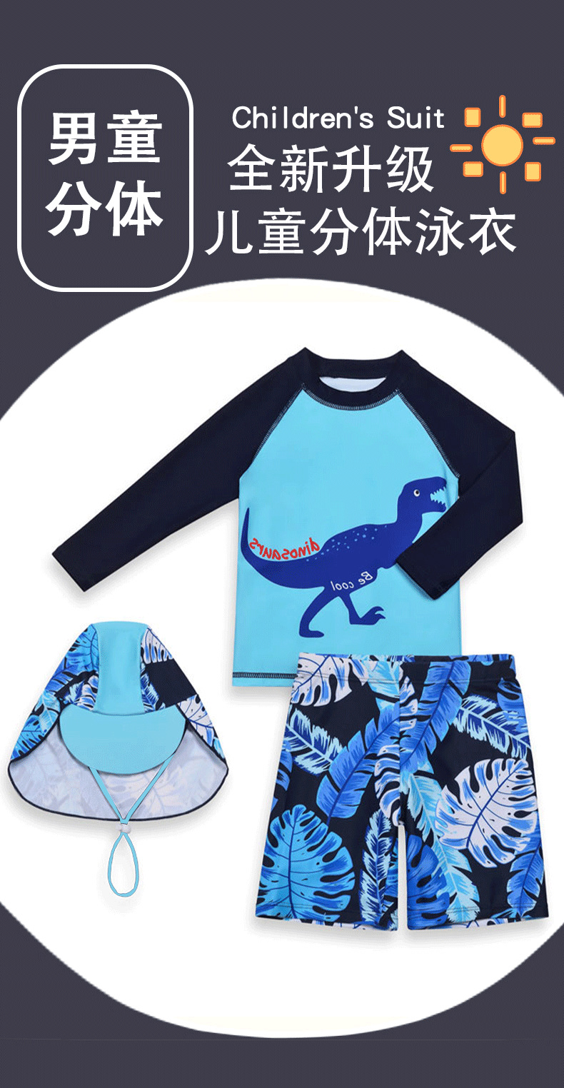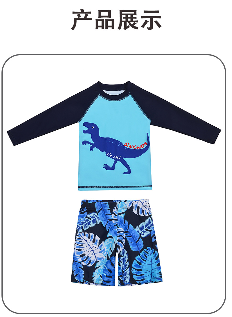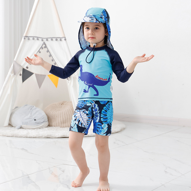 어린이 수영복 소년 세트 만화 공룡 서핑복 긴팔 중대형 어린이 소년 분리형 수영복 한국 스타일 디자인