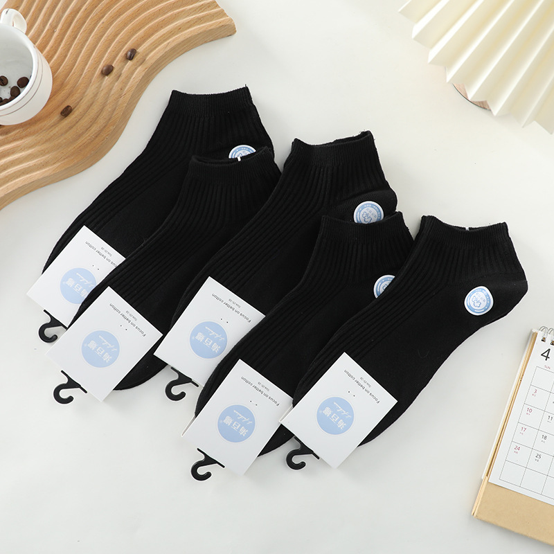 Haibaina 봄과 여름 짧은 튜브 양말 남성용 심플 더블 니들 스트라이프 보트 양말 통기성 로우면 양말 도매스토어 가기