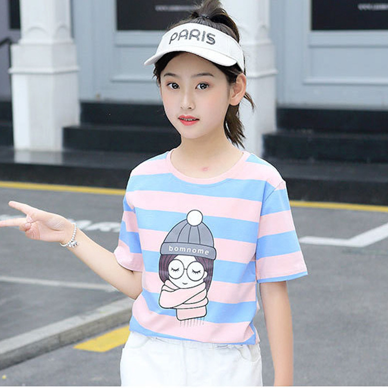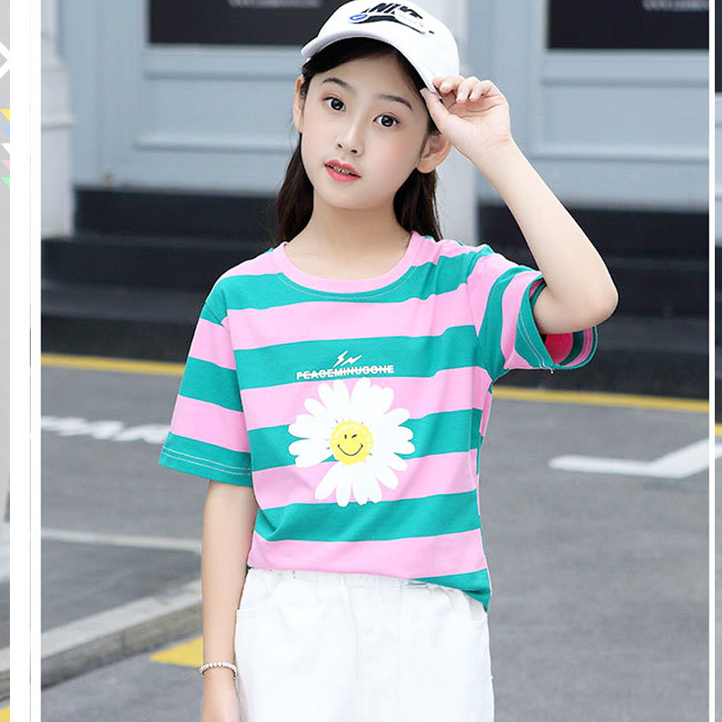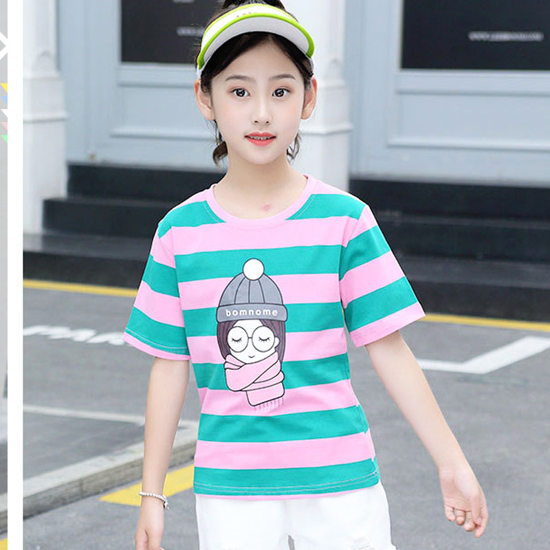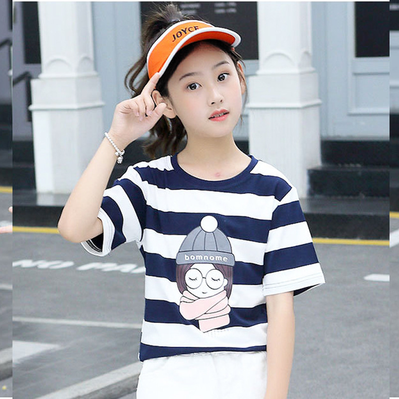 여자 반팔 티셔츠 2023 여름 새로운 대형 어린이 면 스트라이프 얇은 조커 코트 머리카락 세대스토어 가기
