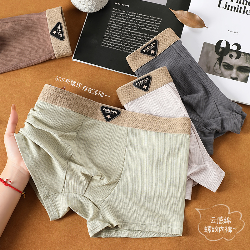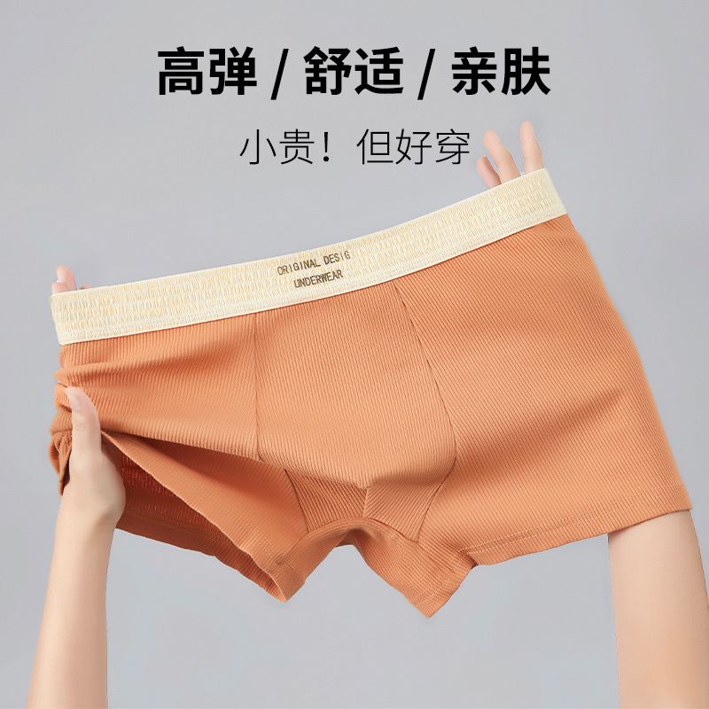 高端男士内裤纯棉男款平角男生抑菌透气舒适潮流四角短裤螺纹棉批