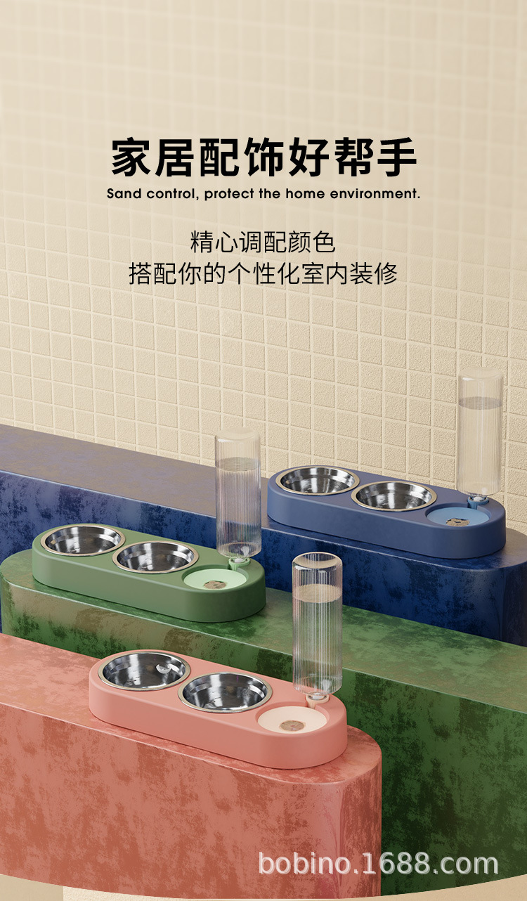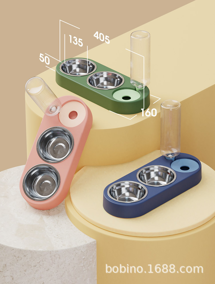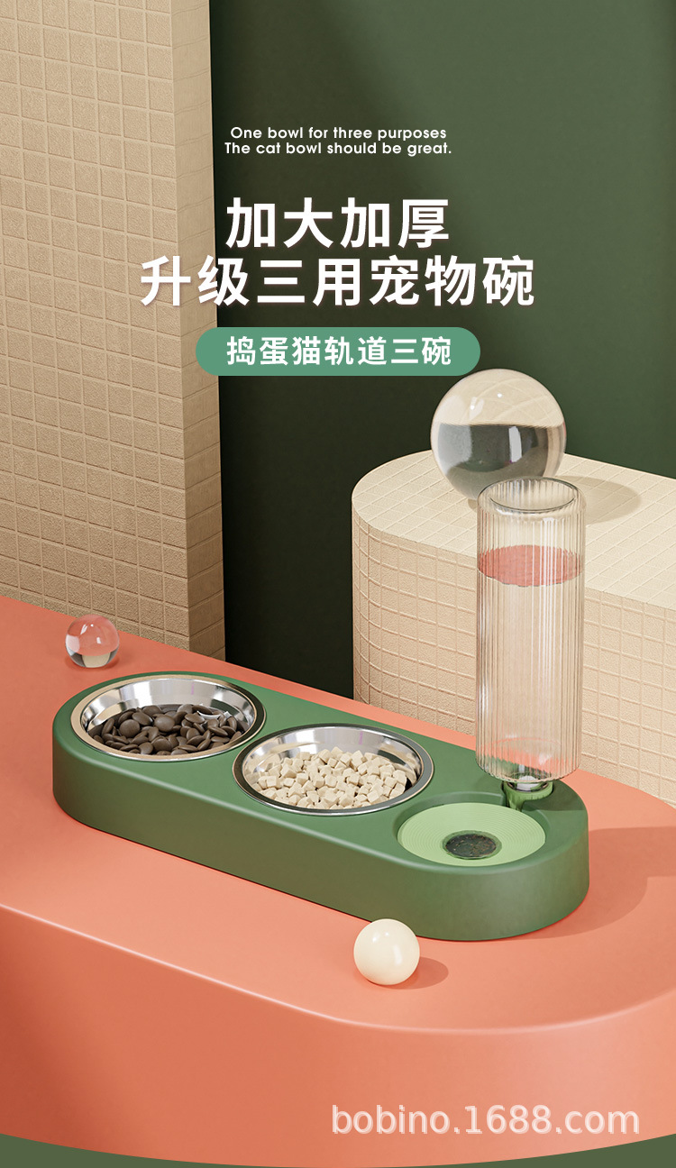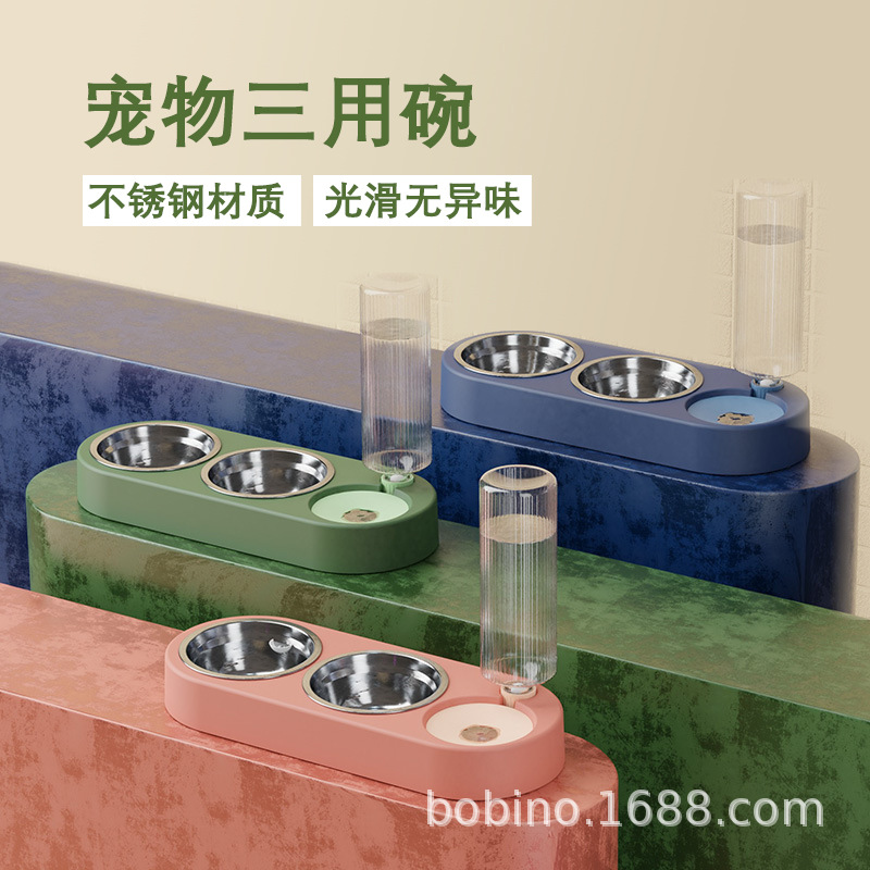 애완동물 이중식기 3가지 기능 고양이 강아지 사료 그릇 자동 급수기 스테인리스 강아지 고양이 사료 그릇 물그릇 일체형 그릇