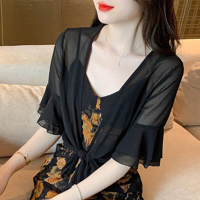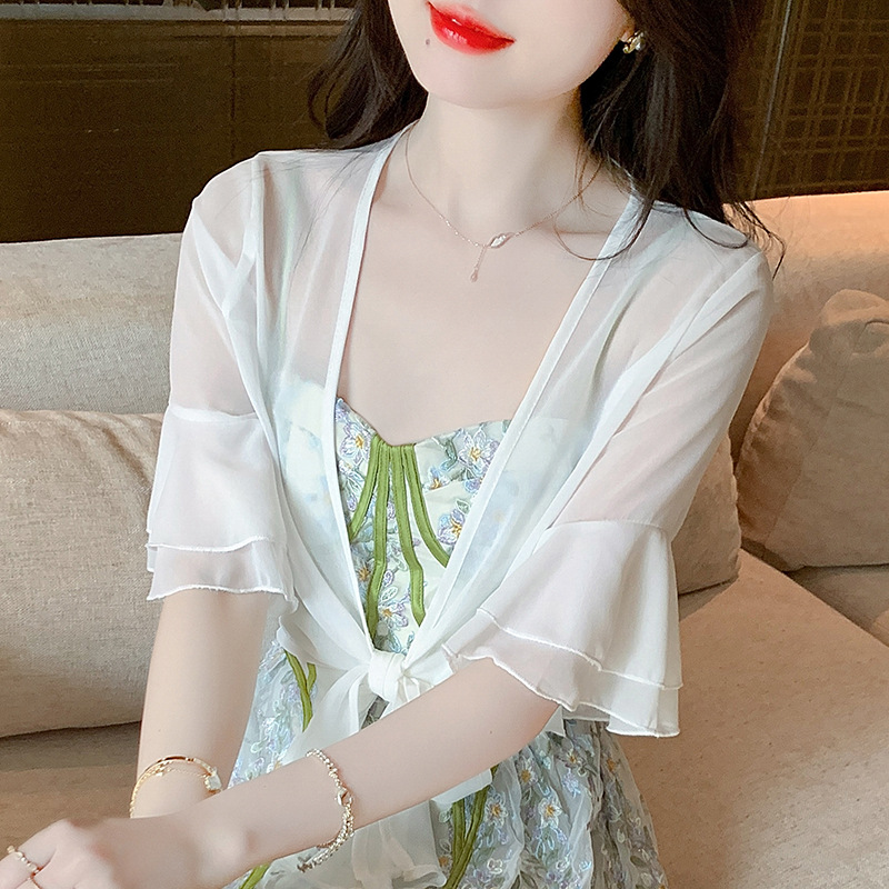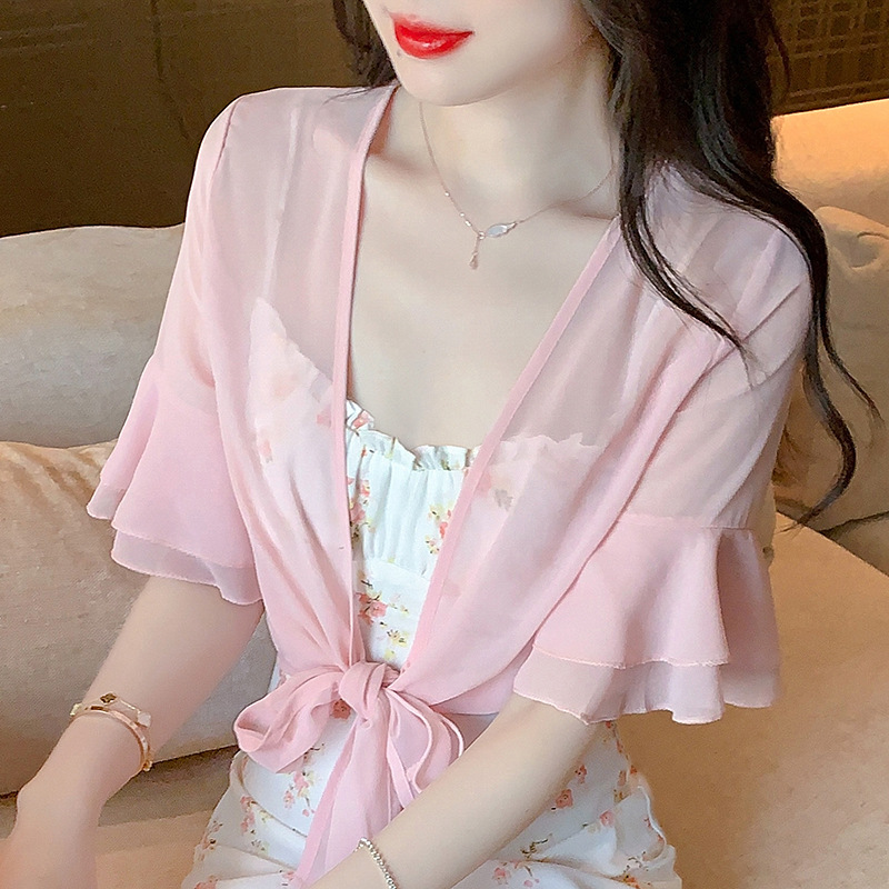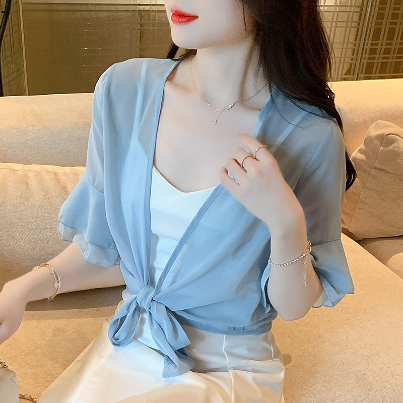 2025 여름 얇은 작은 목도리 짧은 코트 여성 태양 보호 의류 다목적 짧은 작은 양복 조끼 쉬폰 카디건 에어컨 셔츠