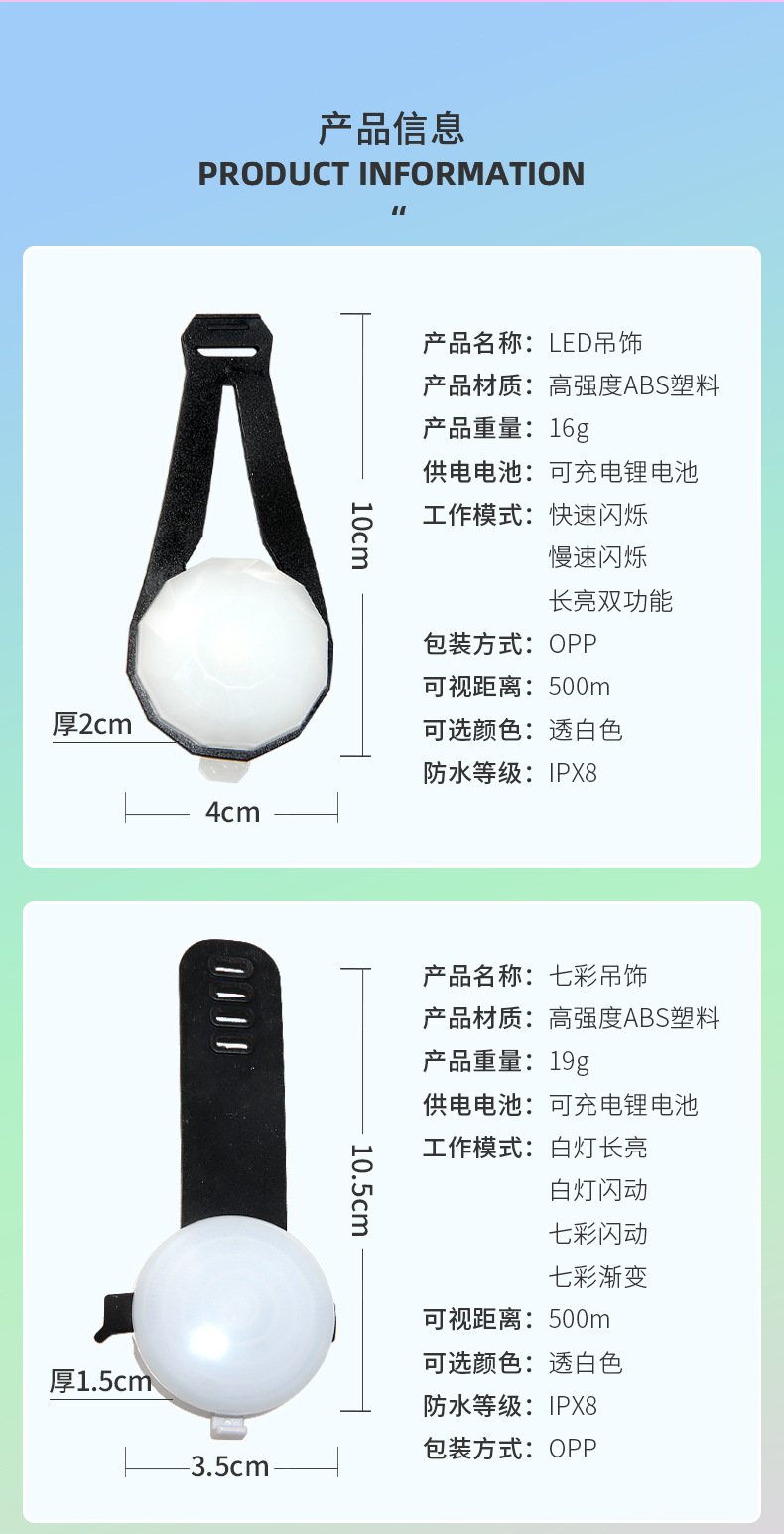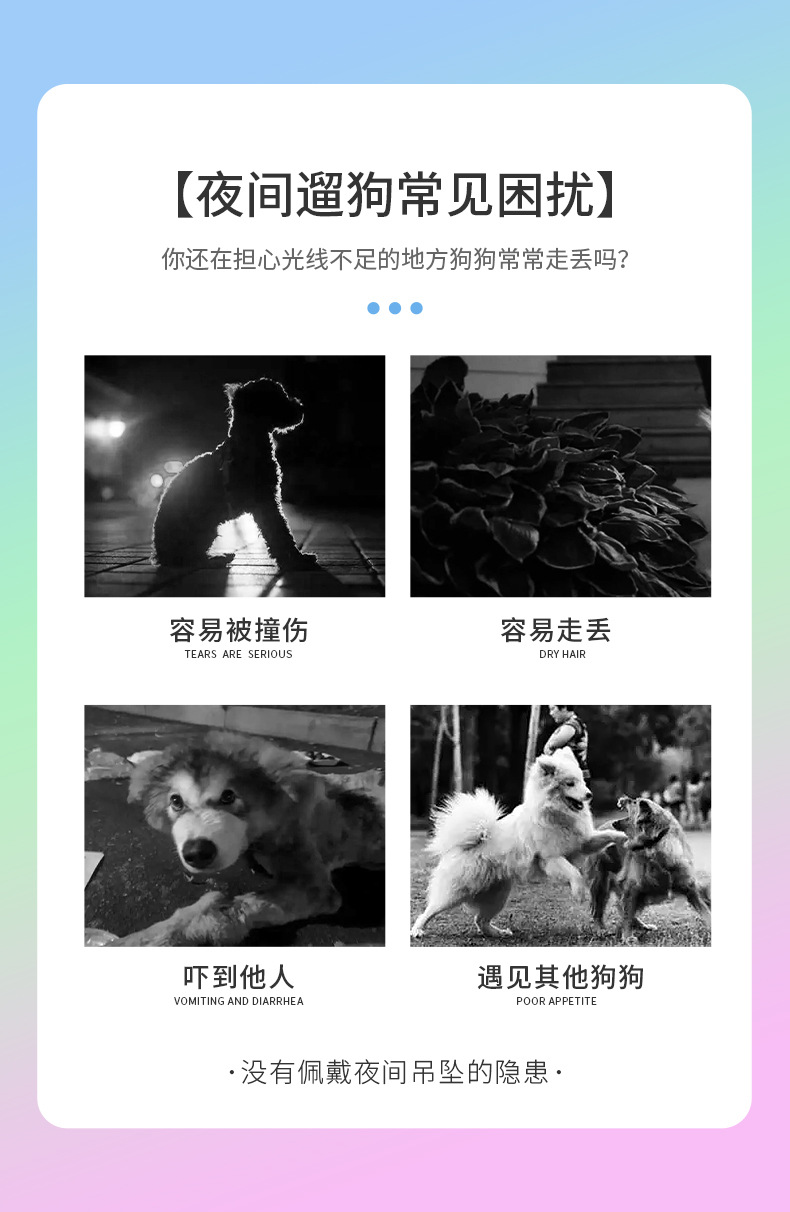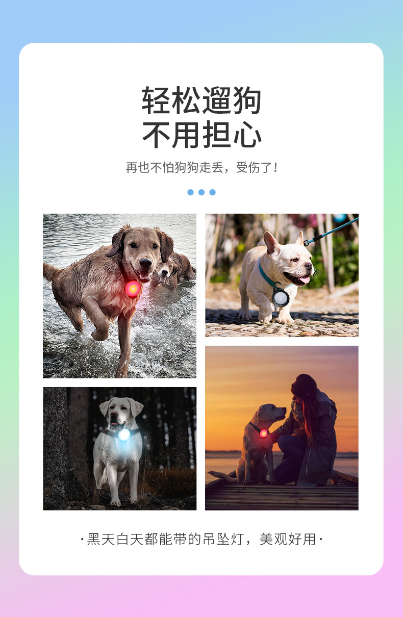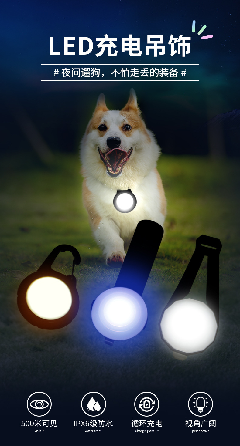 애완동물 LED 펜던트 야외 여행 경고 펜던트 USB 충전 방수 기능 다채로운 조명 펜던트스토어 가기