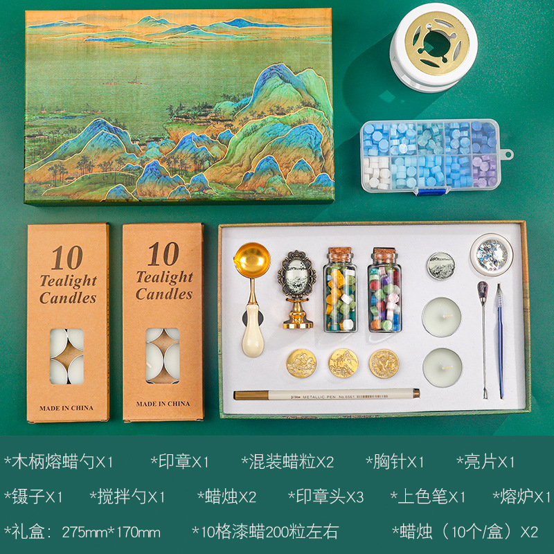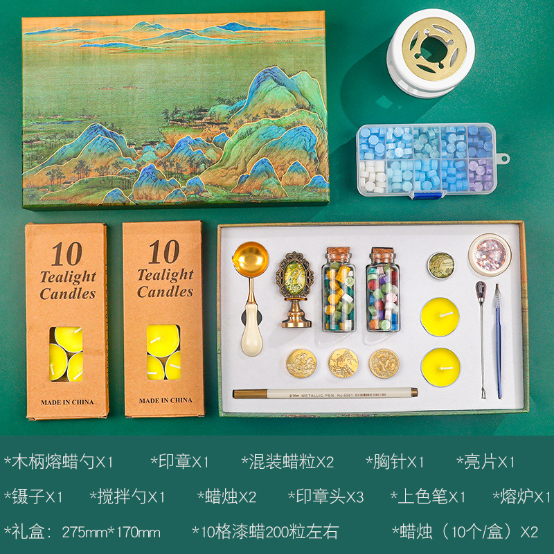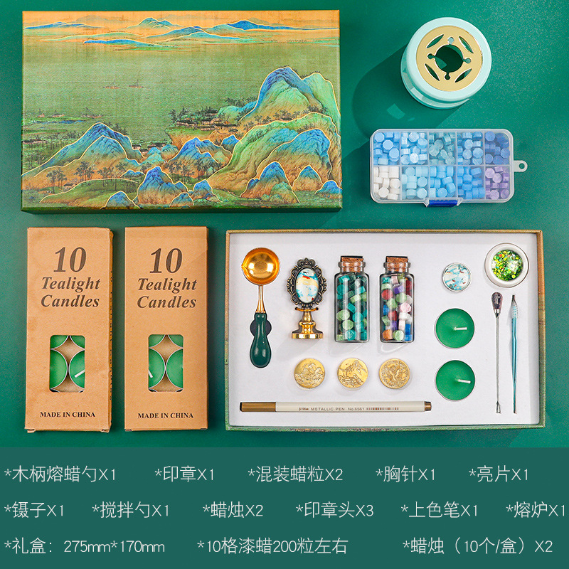 • 불 페인트 배지 14 조각 세트-Qianli Jiangshan + 녹색 양초 20 + 별이 빛나는 하늘 10 왁스 + 다크 그린 스토브 1