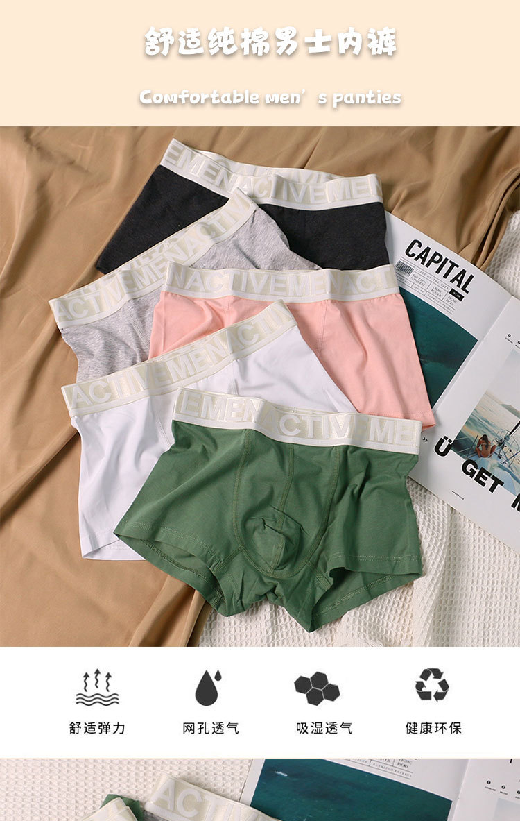 남자 속옷 남자의 순면 복서 여름 통기성 예술적 청소년 복서 반바지 머리 남자의 편안한 편지 벨트