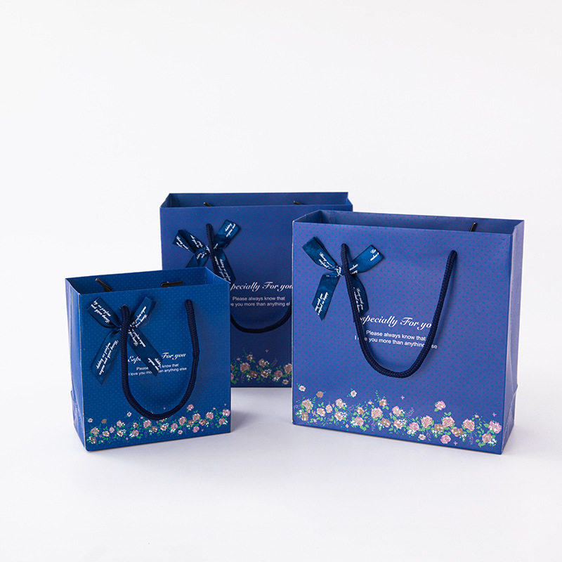 재고 블루 핸드백 하이 엔드 의류 매장 포장 가방 보석 종이 가방 남성 생일 선물 가방 제조 업체 도매
