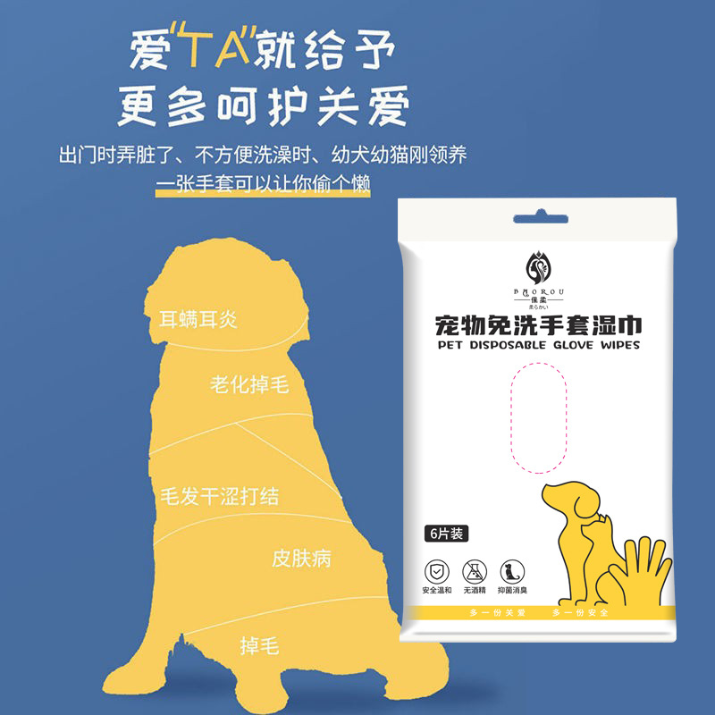 • 애완동물 워시 프리 장갑 1 패키지 (6 장 팩)