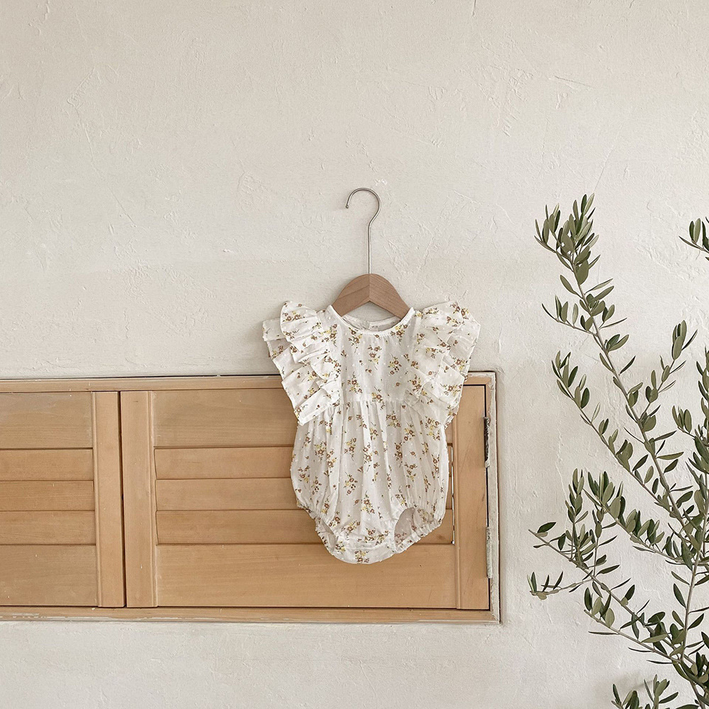 In 한국식 여름 옷 아기 소녀 점프 슈트 100 일 연회 아기 삼각형 방귀 외국 스타일 신생아 카키 등산 옷