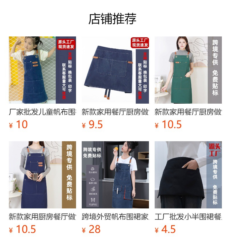 本厂是专业生产围裙20年的工厂,有着丰富的生产,定制经验,日产量8000+ 全套的生产设备,定制印字刺绣一站式服务 。 来样定制,代加工,一件代发,满足多样需求 跨境电商专属:opp包装,装箱,贴标等服务。 让您售后无忧,快速响应,贴心服务一路相伴。