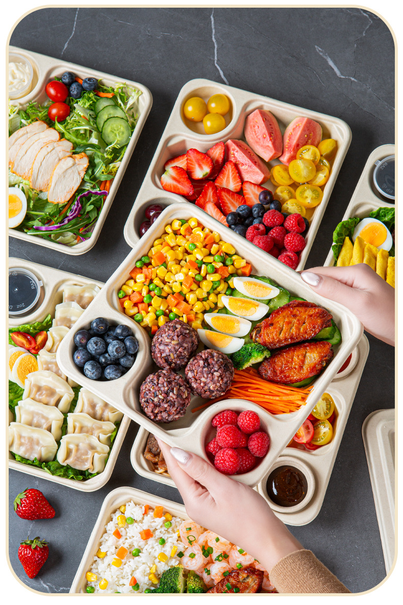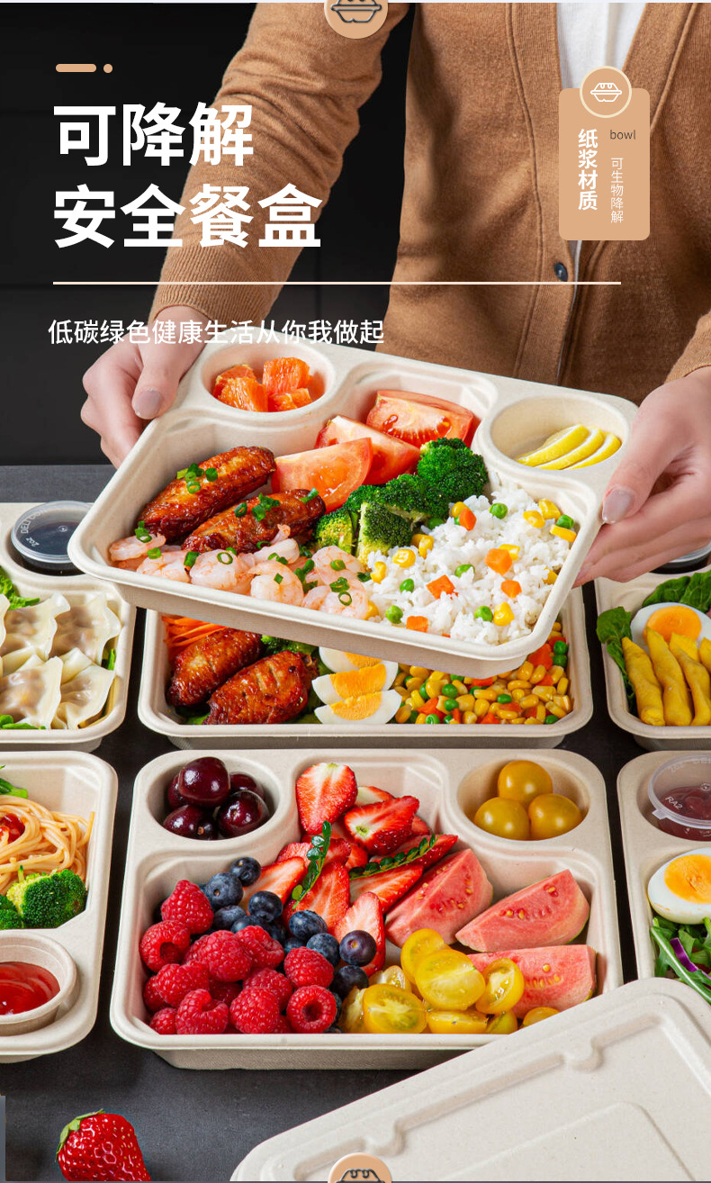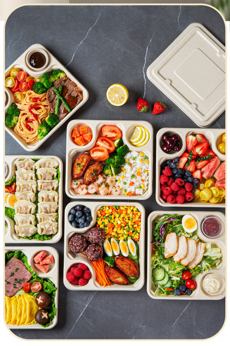 일회용 테이크 아웃 샐러드 박스 가방 소스컵 포장 상자 경식품 도시락 분해성 도시락 펄프 도시락
