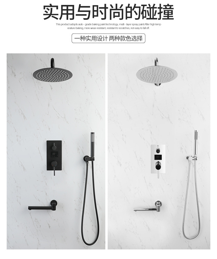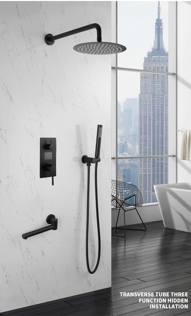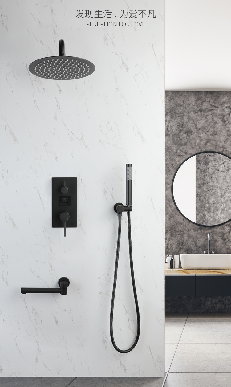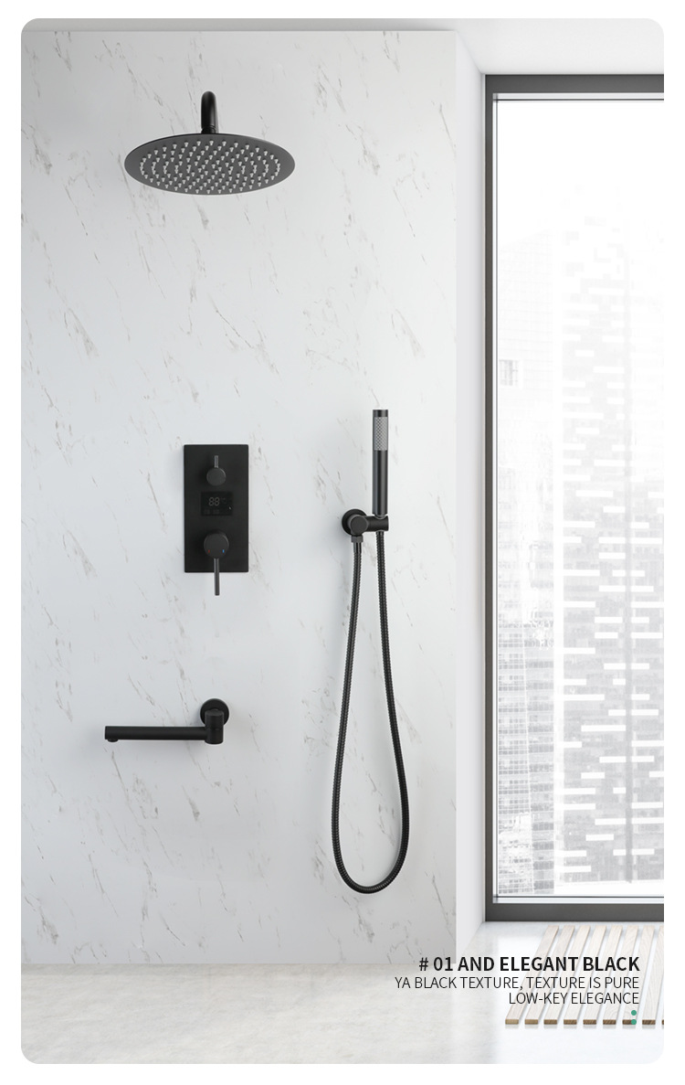 숨겨진 샤워 세트 모든 구리 블랙 벽 욕실 지능형 디지털 디스플레이 원형 샤워 세 가지 기능 샤워