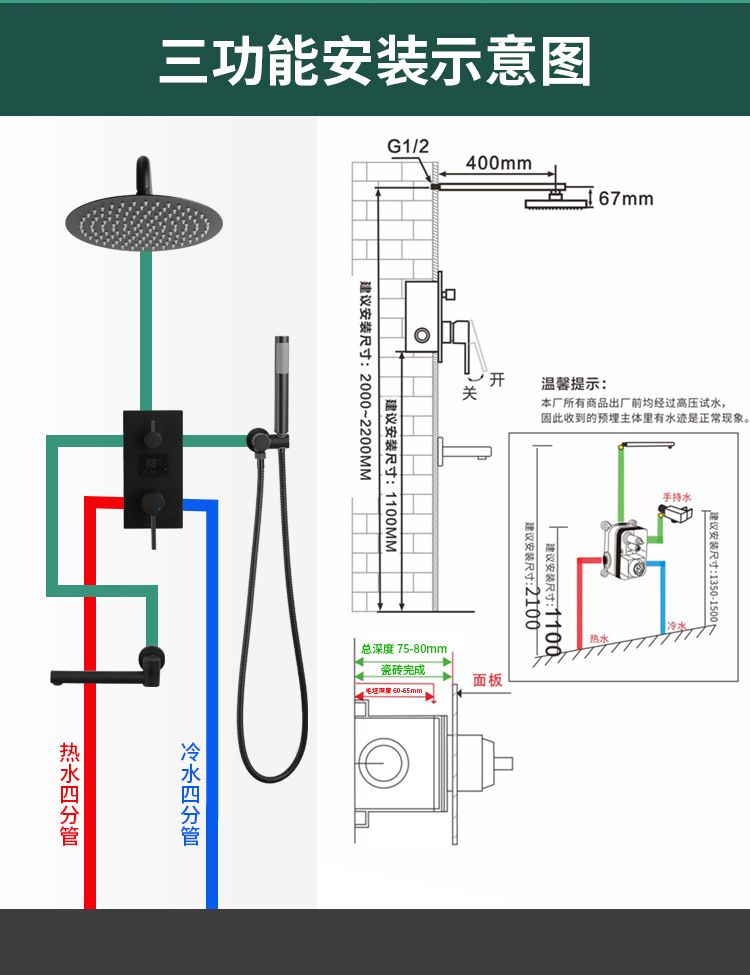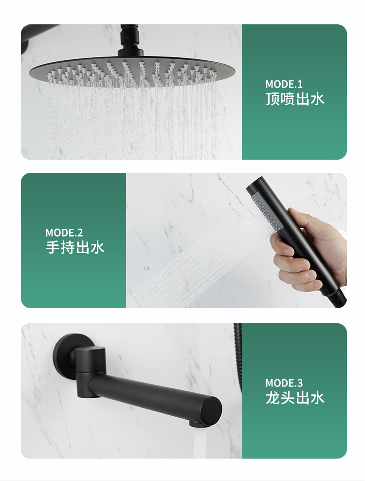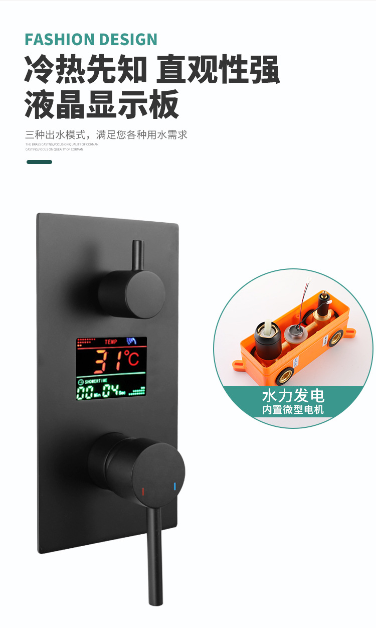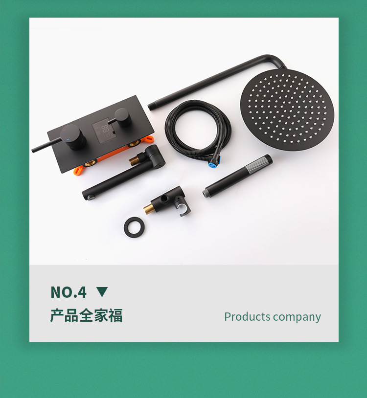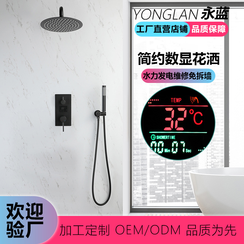 숨겨진 샤워 세트 모든 구리 블랙 벽 욕실 지능형 디지털 디스플레이 원형 샤워 세 가지 기능 샤워스토어 가기