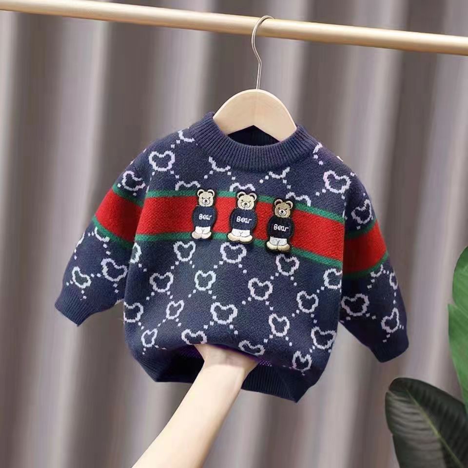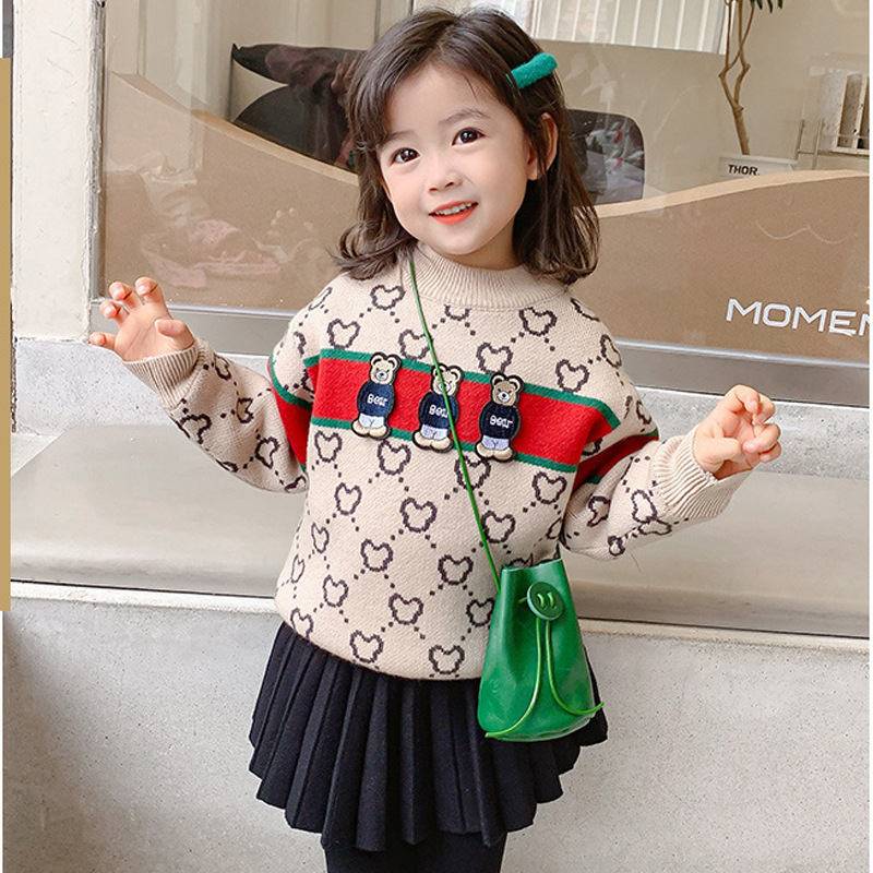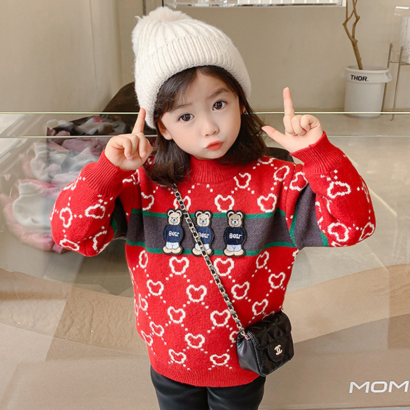여아 가을과 겨울 스웨터 2023 새로운 어린이 따뜻한 두꺼운 니트 베이스 셔츠 아기의 새해 스웨터스토어 가기