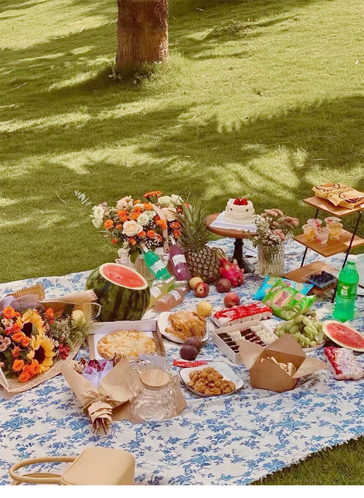 스타일 피크닉 매트 봄 외출 잔디 매트 외출 식탁보 방습 미국 인쇄 면화 및 린넨 식탁보 피크닉 천 도매스토어 가기