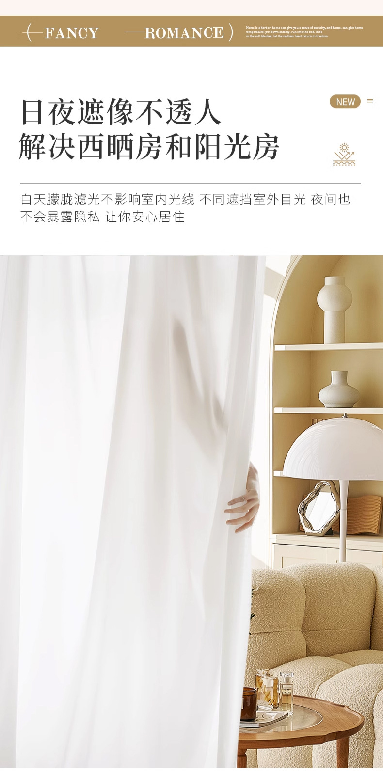 오리지널 팬텀 쉬어 커튼, 빛은 투과하지만 사람을 보이지 않는 얇은 커튼, 거실, 침실, 발코니용 화이트 쉬어, 소흥 커튼스토어 가기