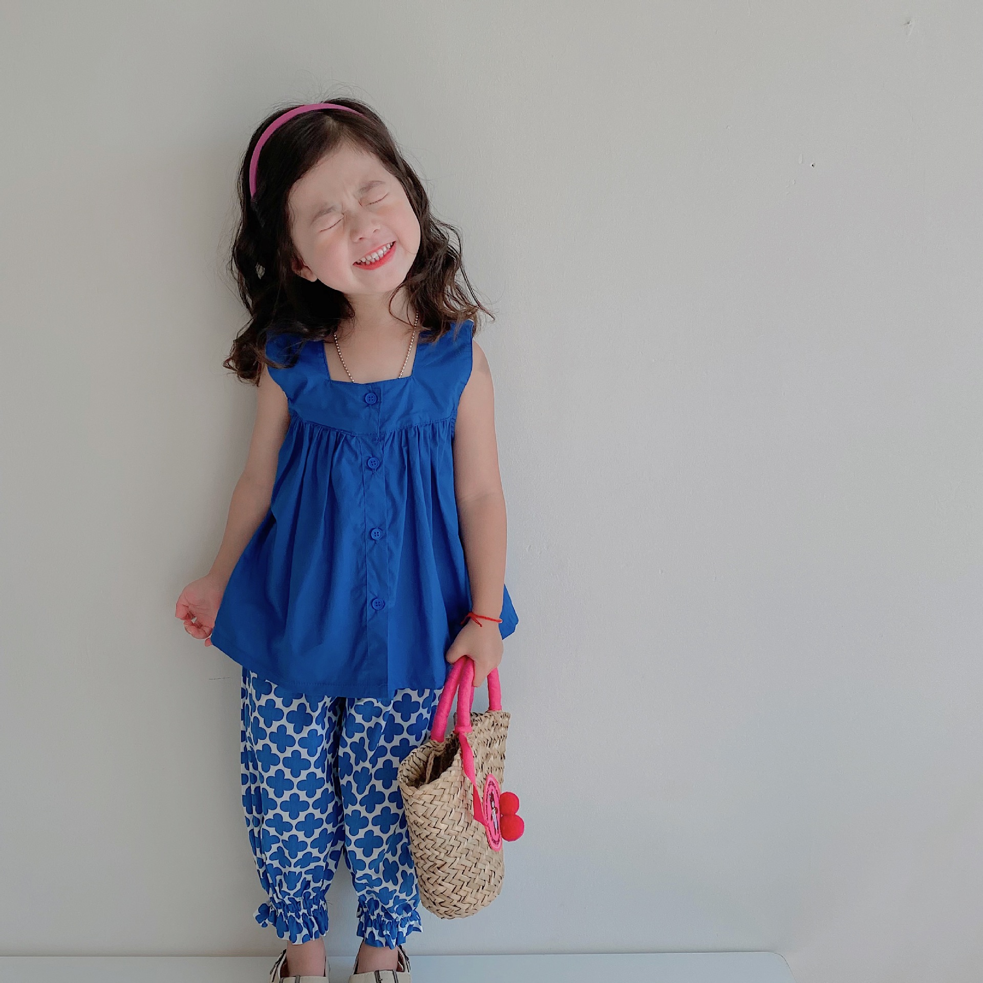 潮范休洋气套装,采用舒适的面料,克莱因蓝娃娃衫+四叶草防蚊!潮范~