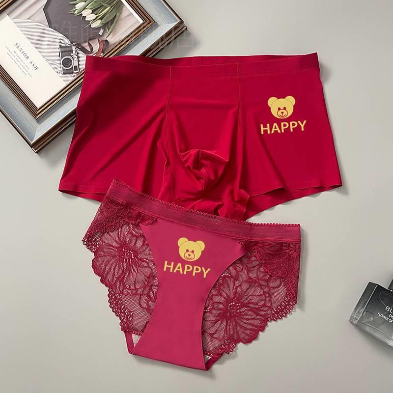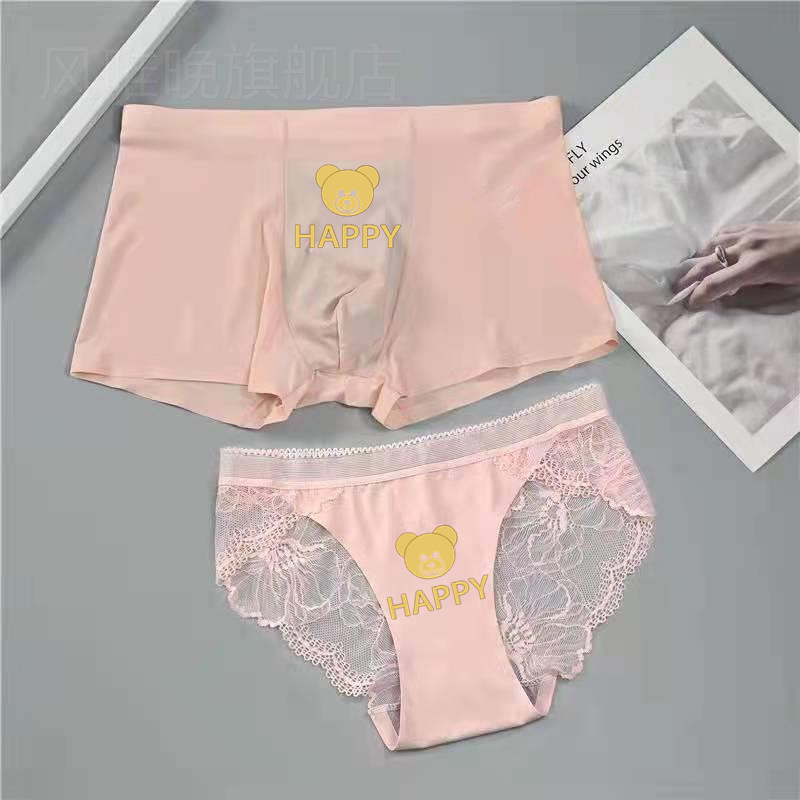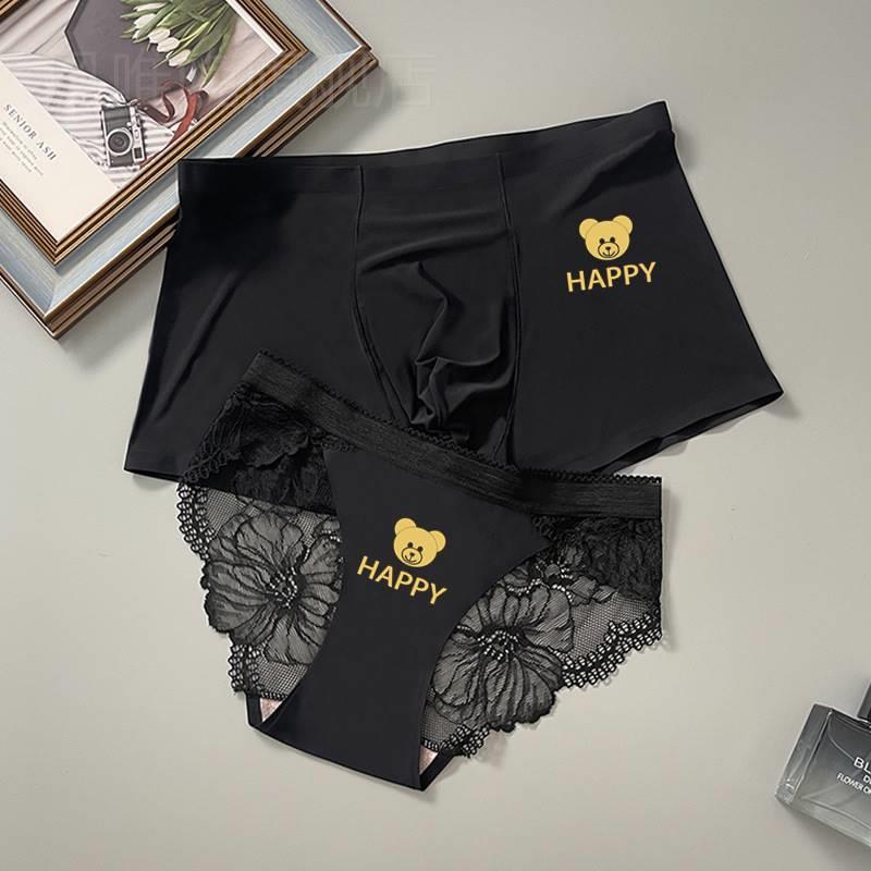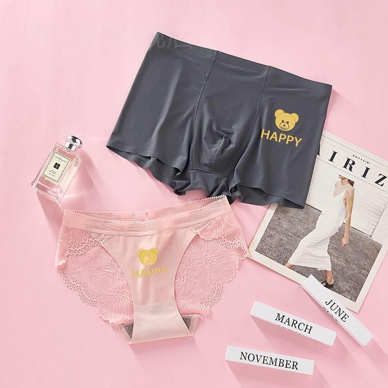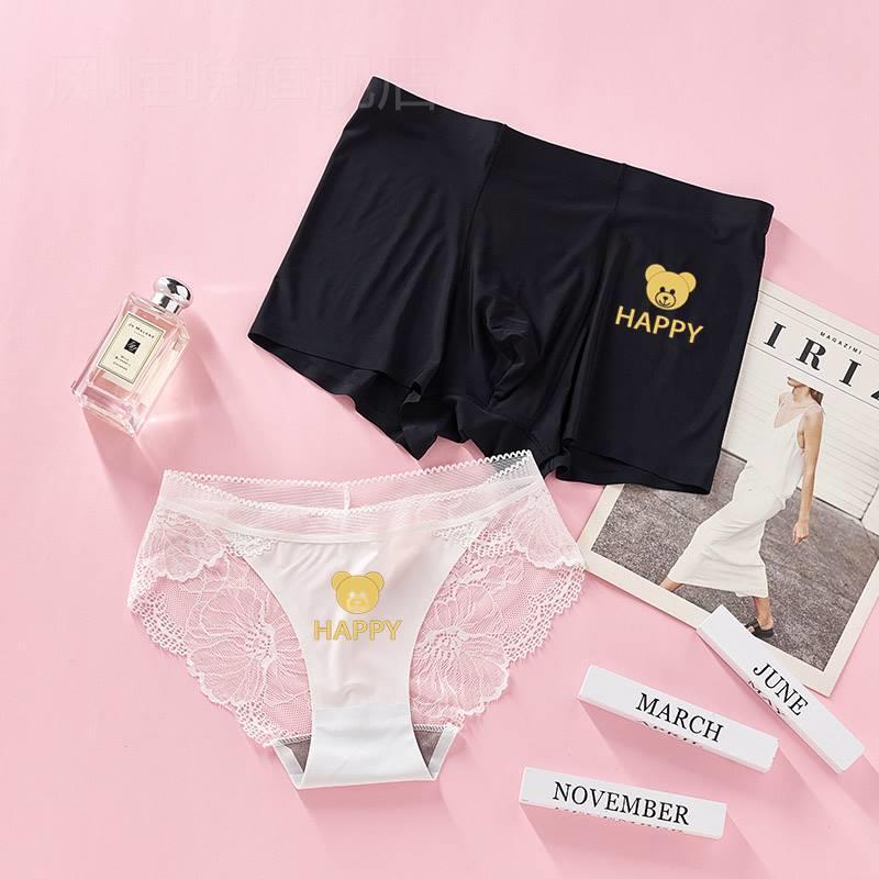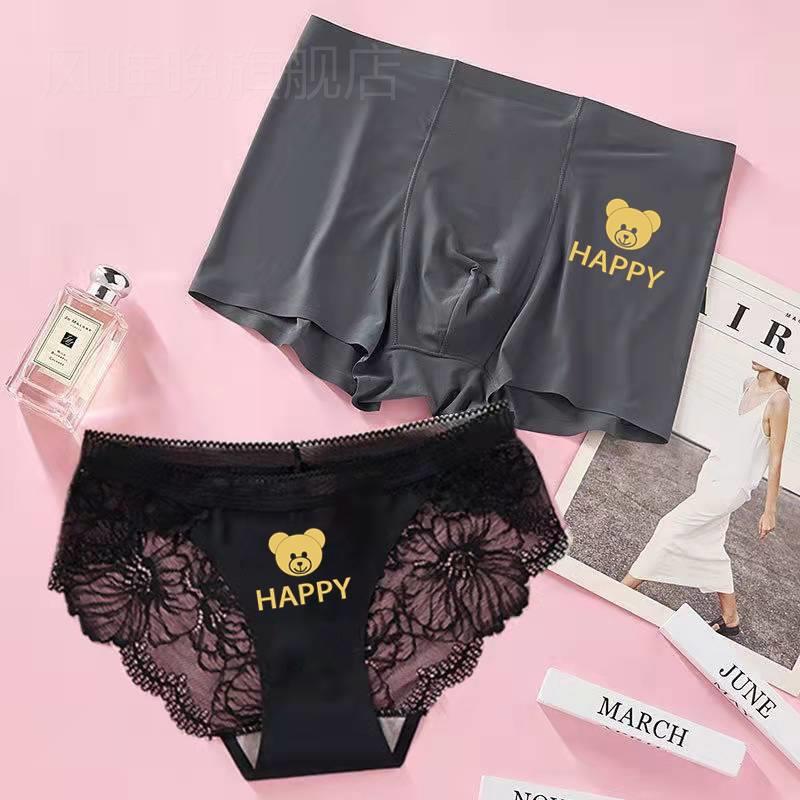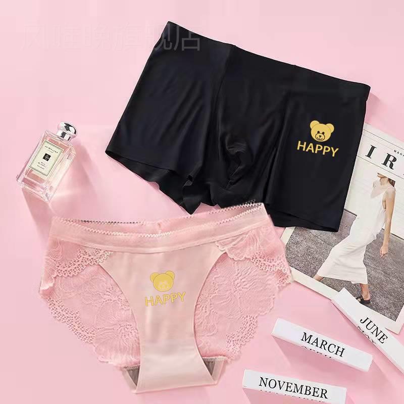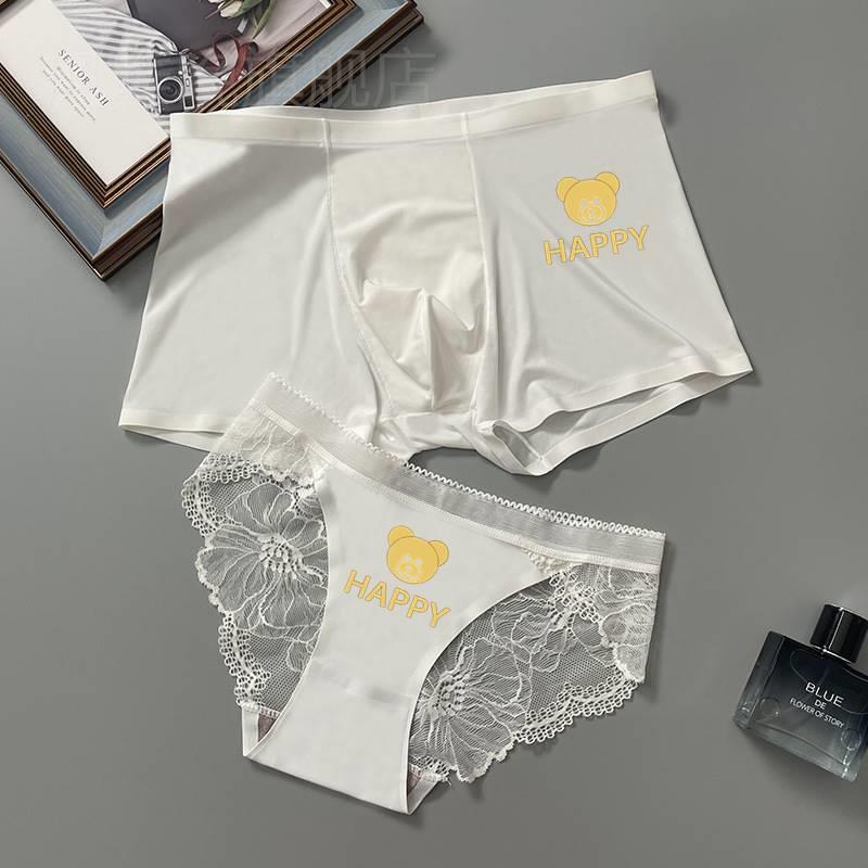 커플 속옷 한 남자와 한 여자 얼음 실크 만화 귀여운 레이스 여름 얇은 빛 럭셔리 남성과 여성의 세트 쌍