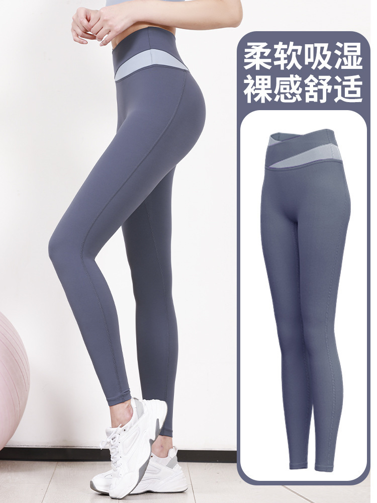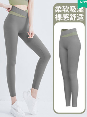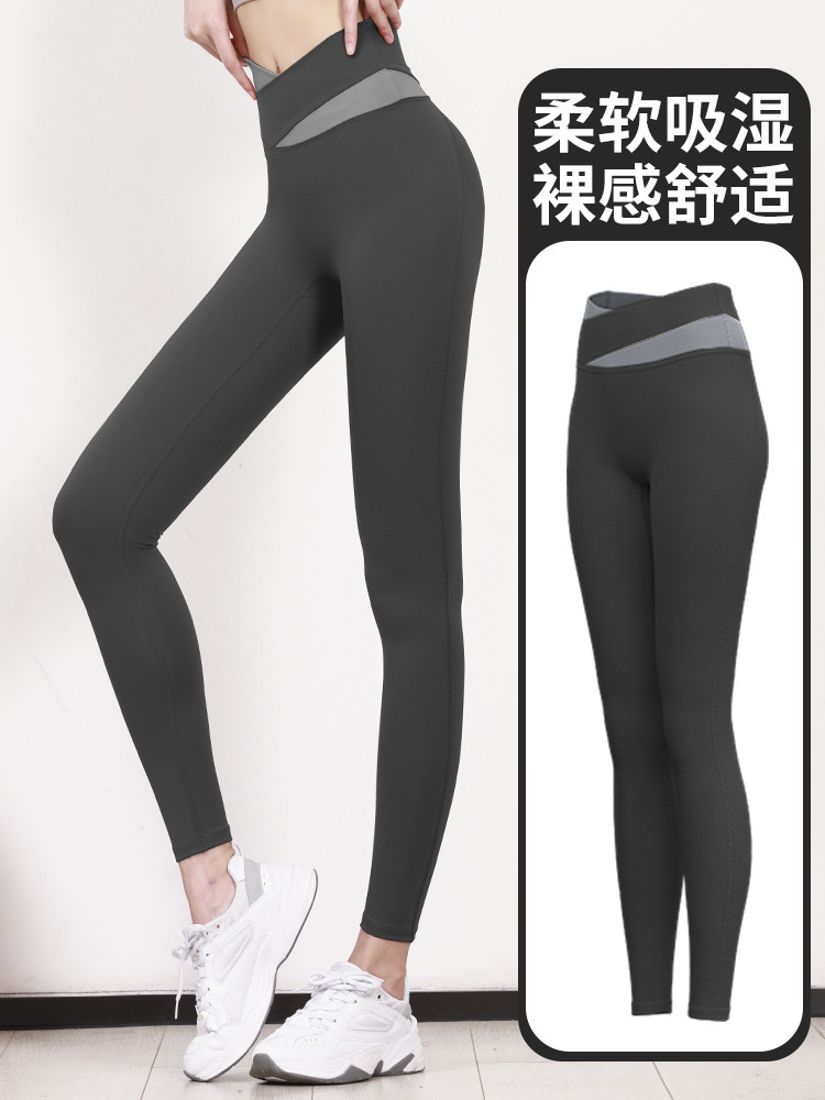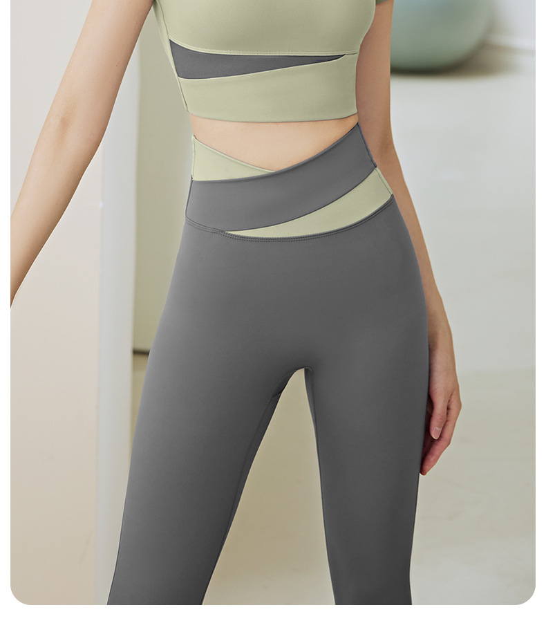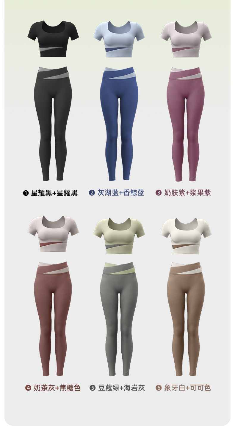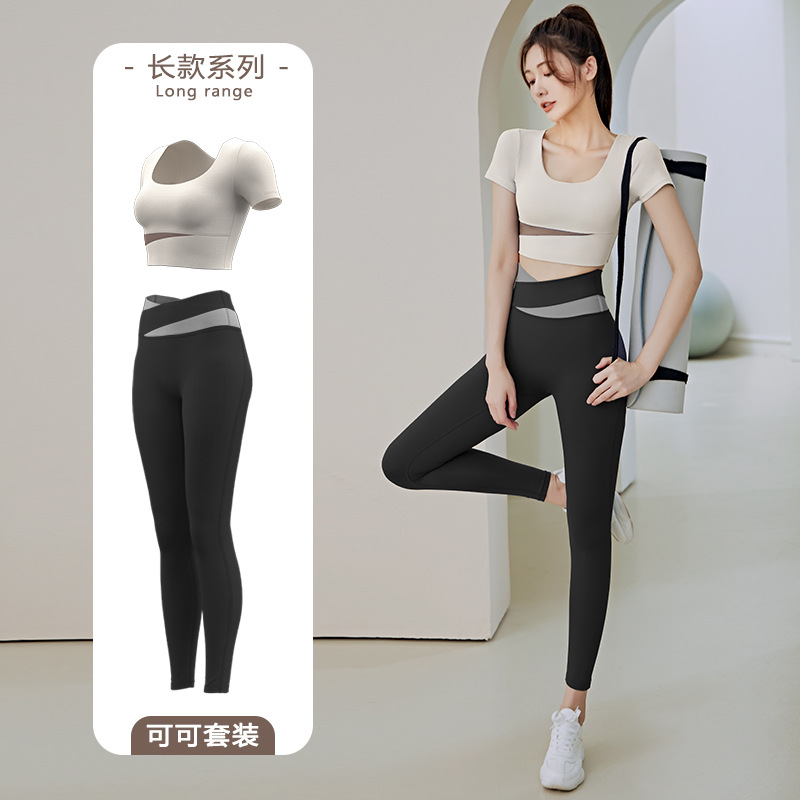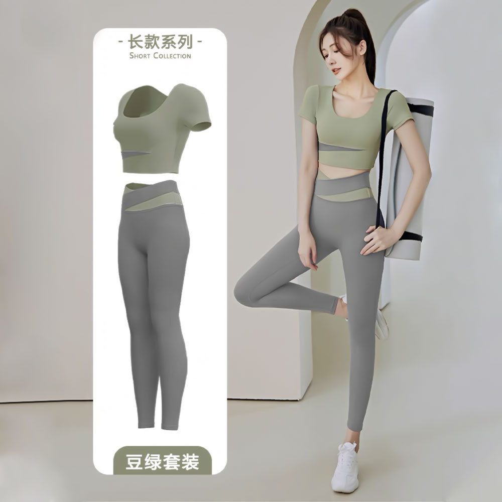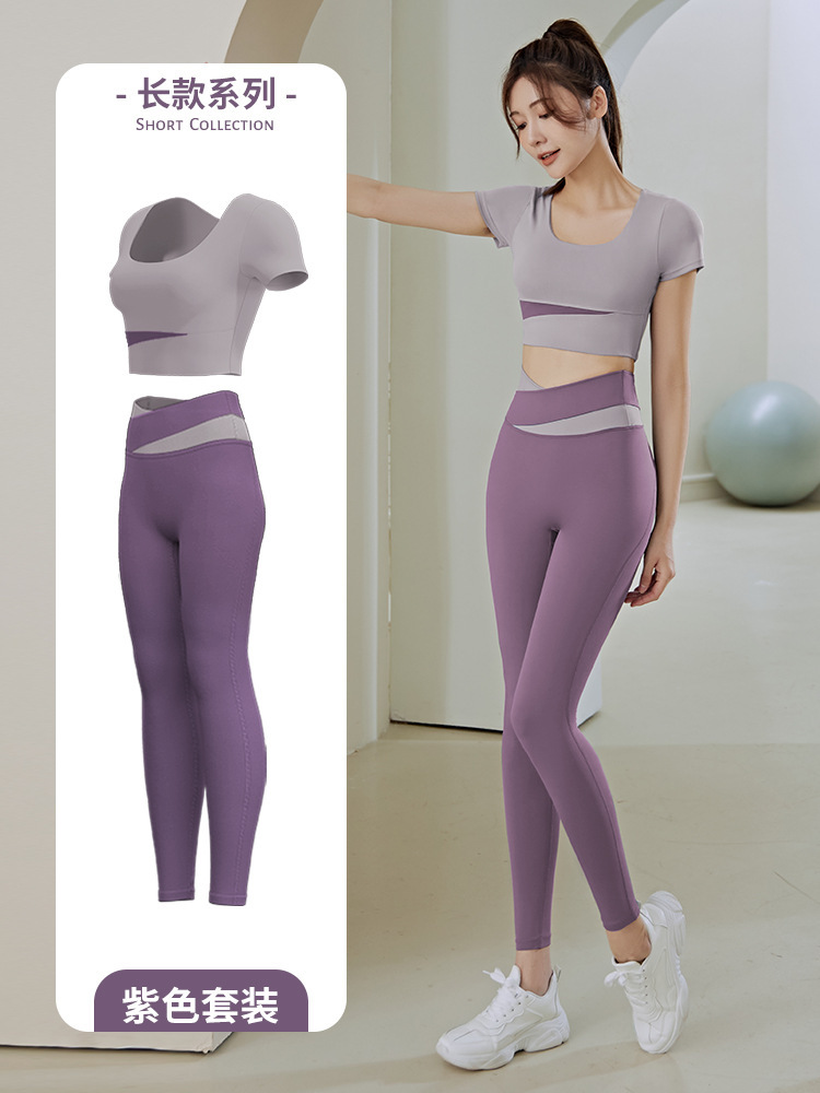 컬러 블록 반팔 요가 세트 여성의 봄과 여름 배꼽 짧은 최고 엉덩이 바지 달리기 스포츠 피트니스 세트