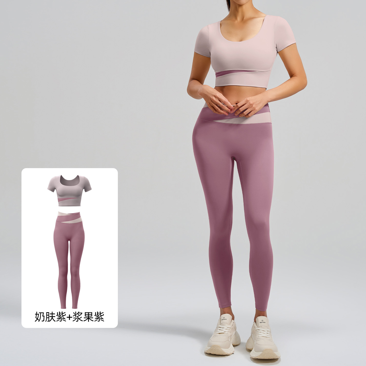 Juyitang 컬러블록 반팔 요가복 세트 여성용 봄여름 힙업 팬츠 러닝 스포츠 트레이닝 피트니스복스토어 가기